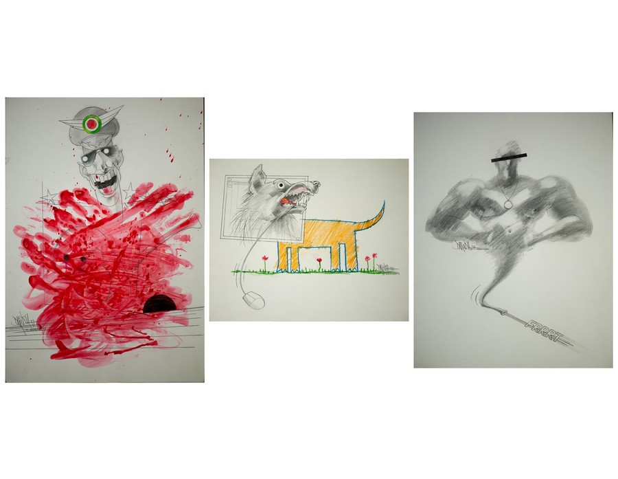 RAPDPUR DARIUSH Tre illustrazioni per Avvenimenti . 1998. Pastelli su cartoncino.. Cm 33,00 x 48,00. 2) 43x33 cm