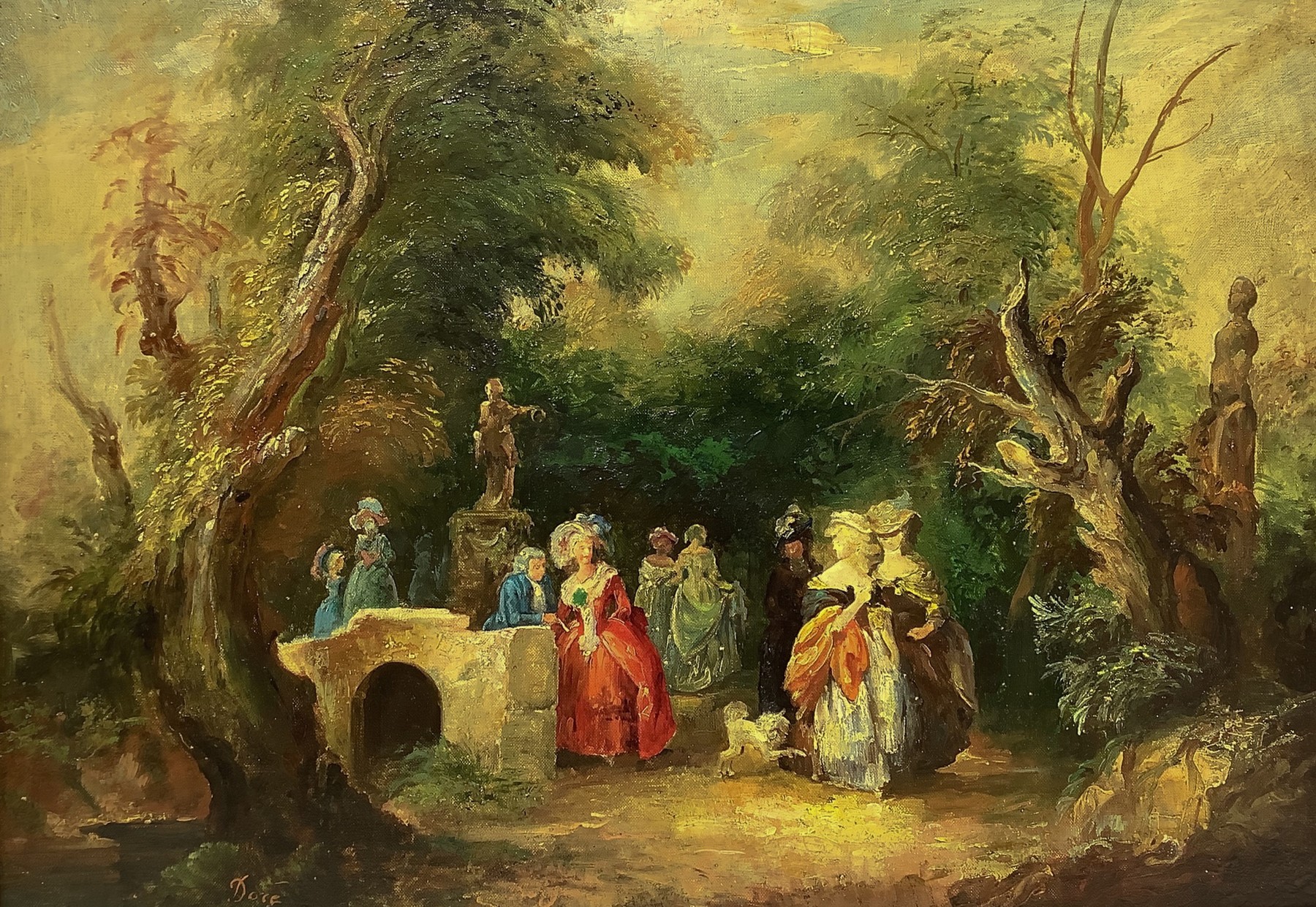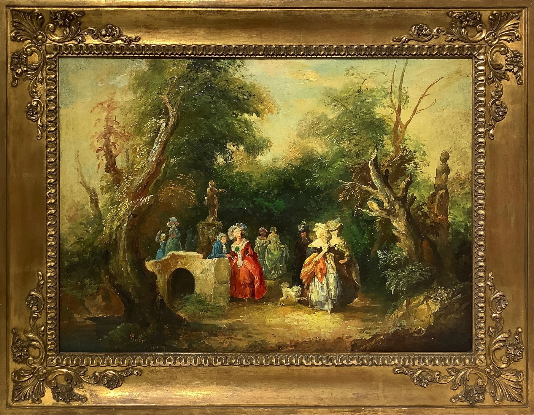 Scena conviviale nello stile settecentesco, 19° secolo 50x70 cm Olio su tela