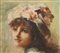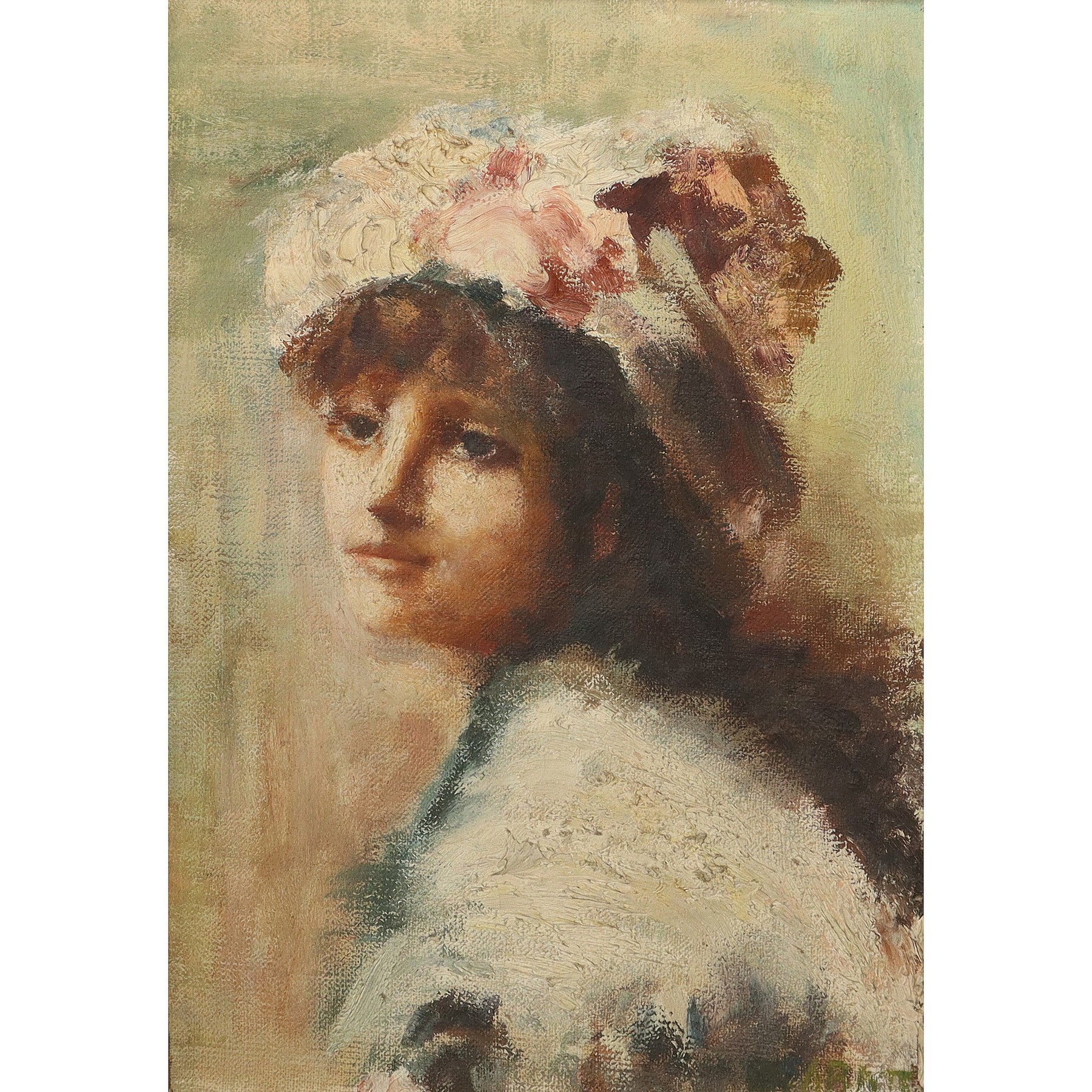 Grazia Abate - Ritratto di giovane donna con cappello h cm 46x30 con cornice h cm 63x47 Olio su tela.