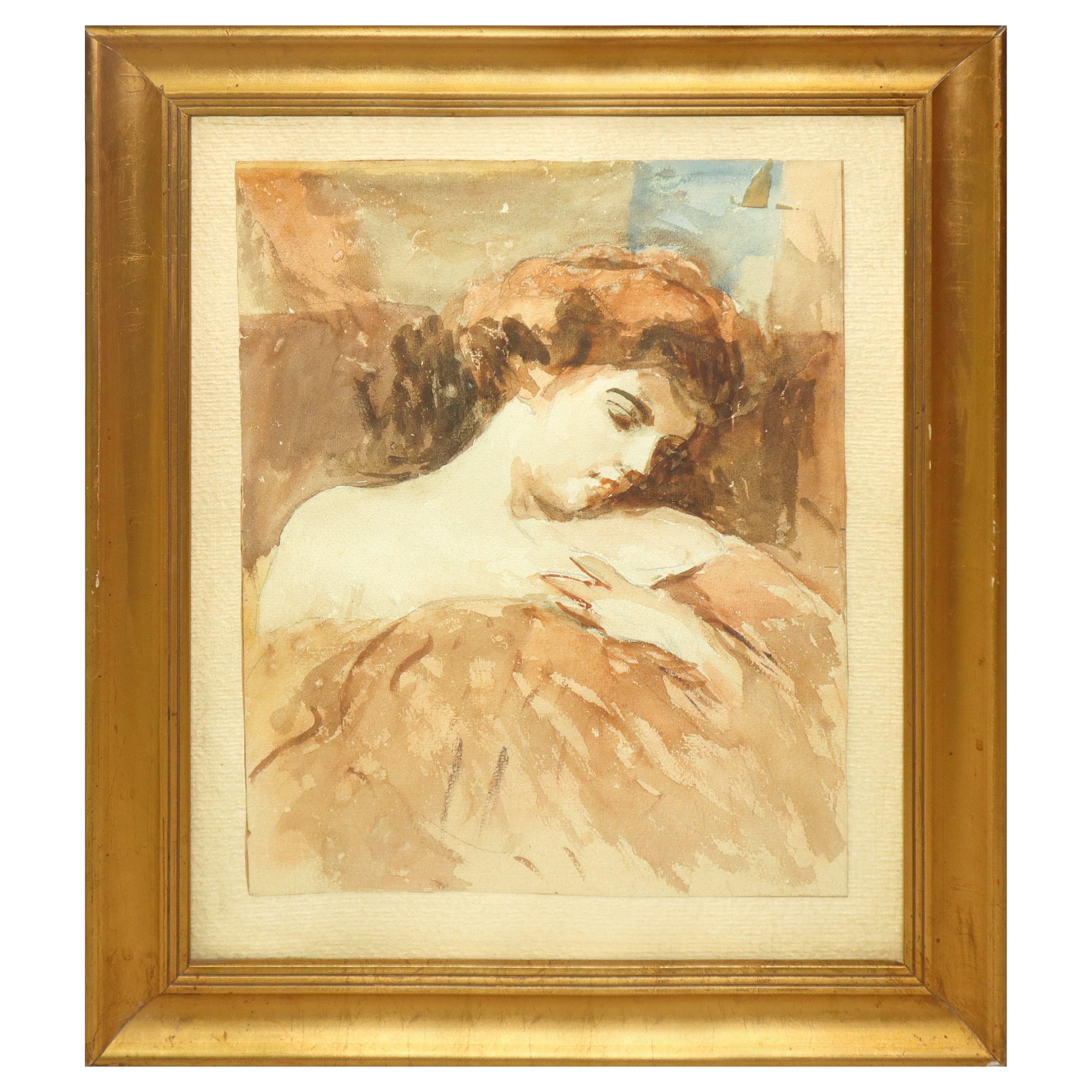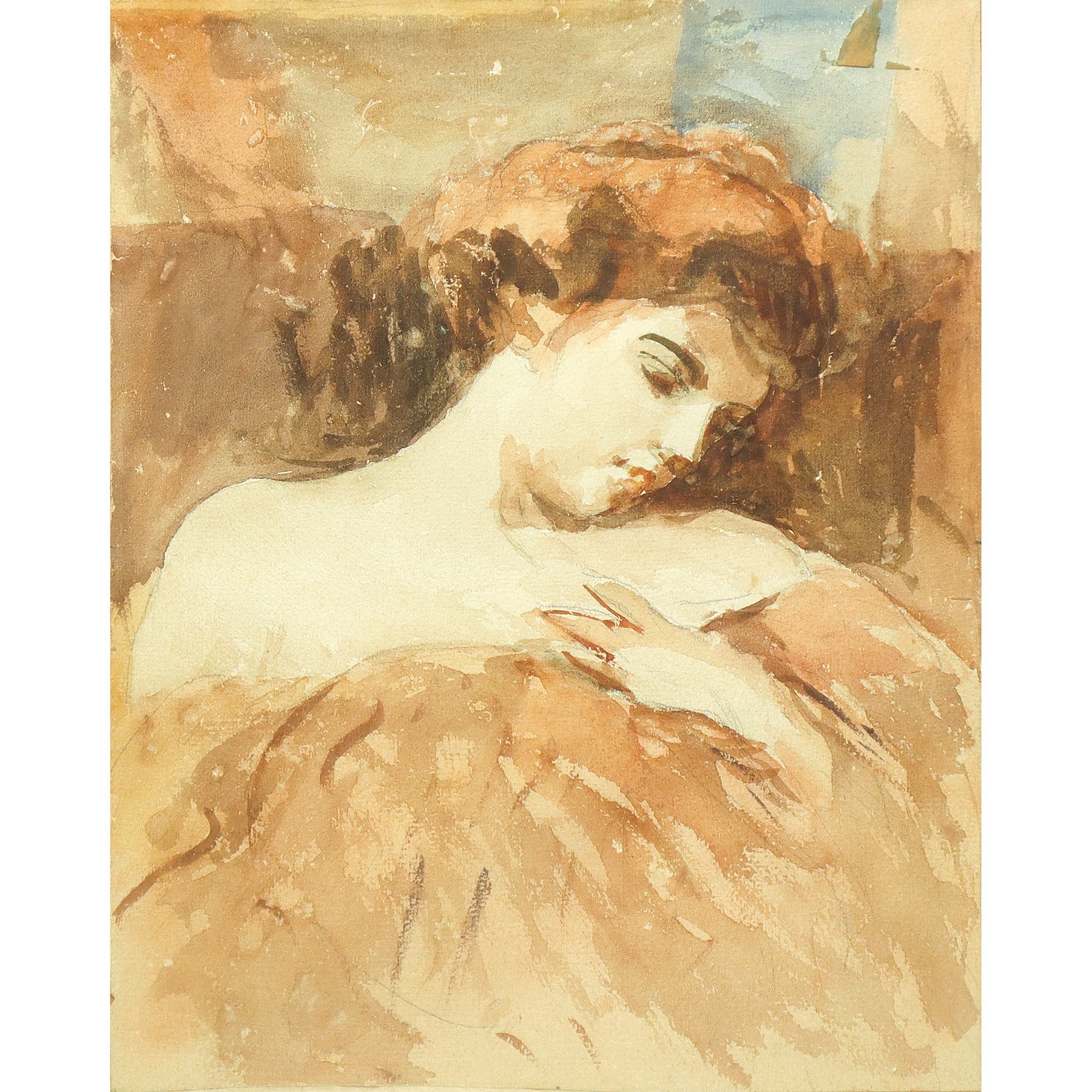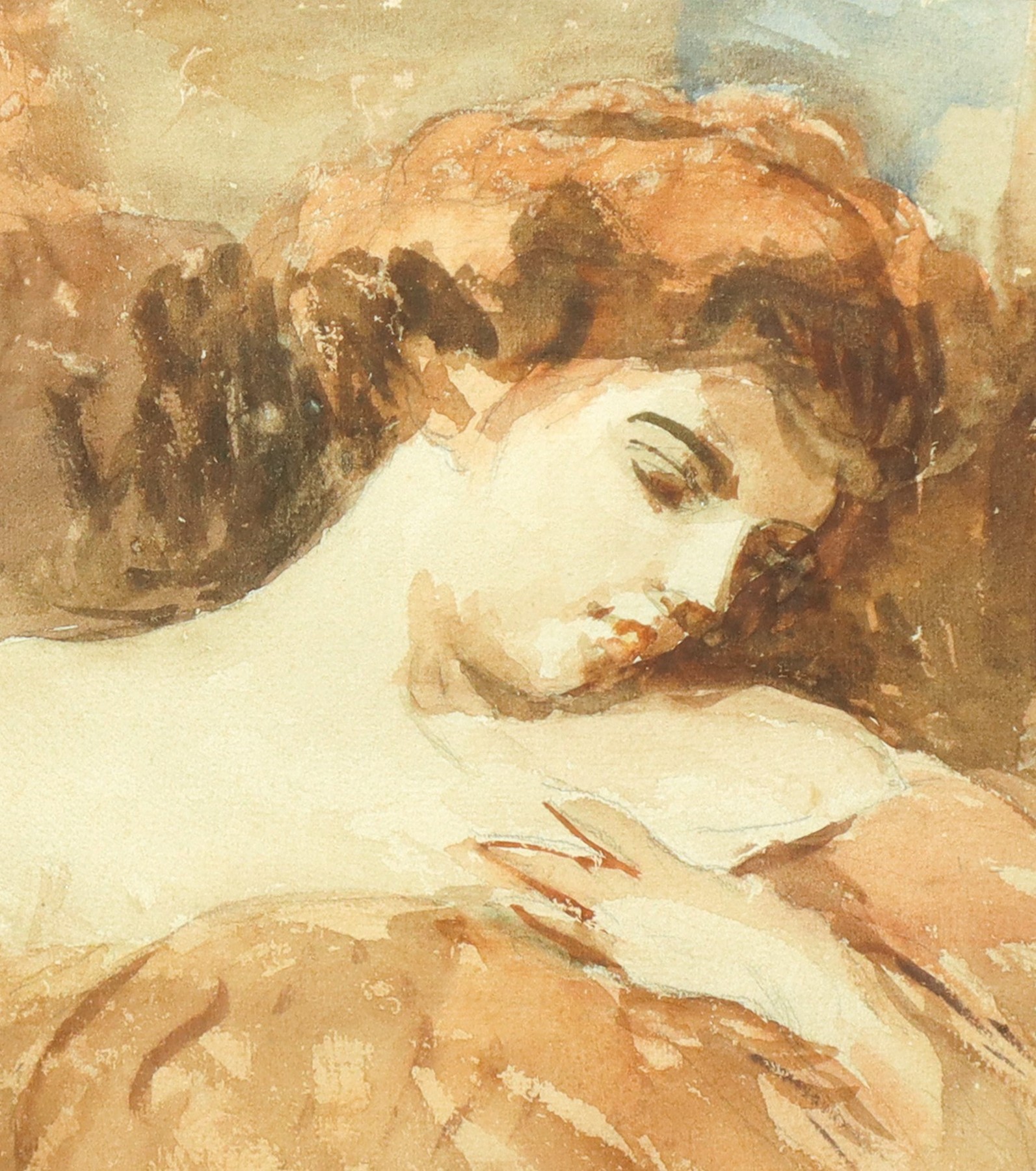 Ritratto di giovane donna dormiente h cm 27x20 con cornice h cm 37,5x30,5 Acquarello su carta