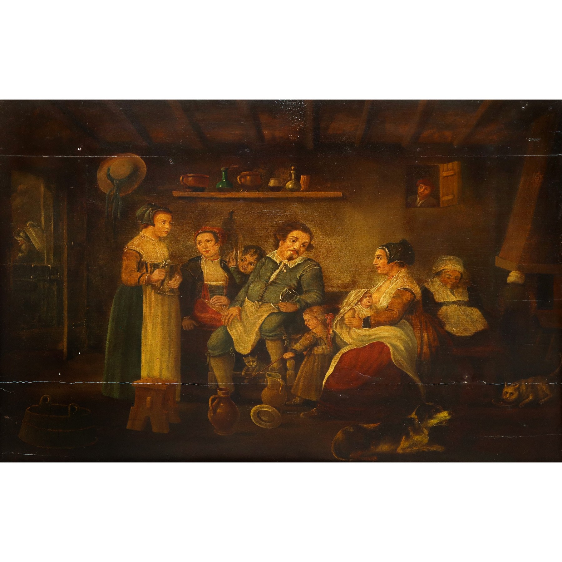 Interno familiare h cm 52x67 in ornice h cm 72X87 olio su tavola