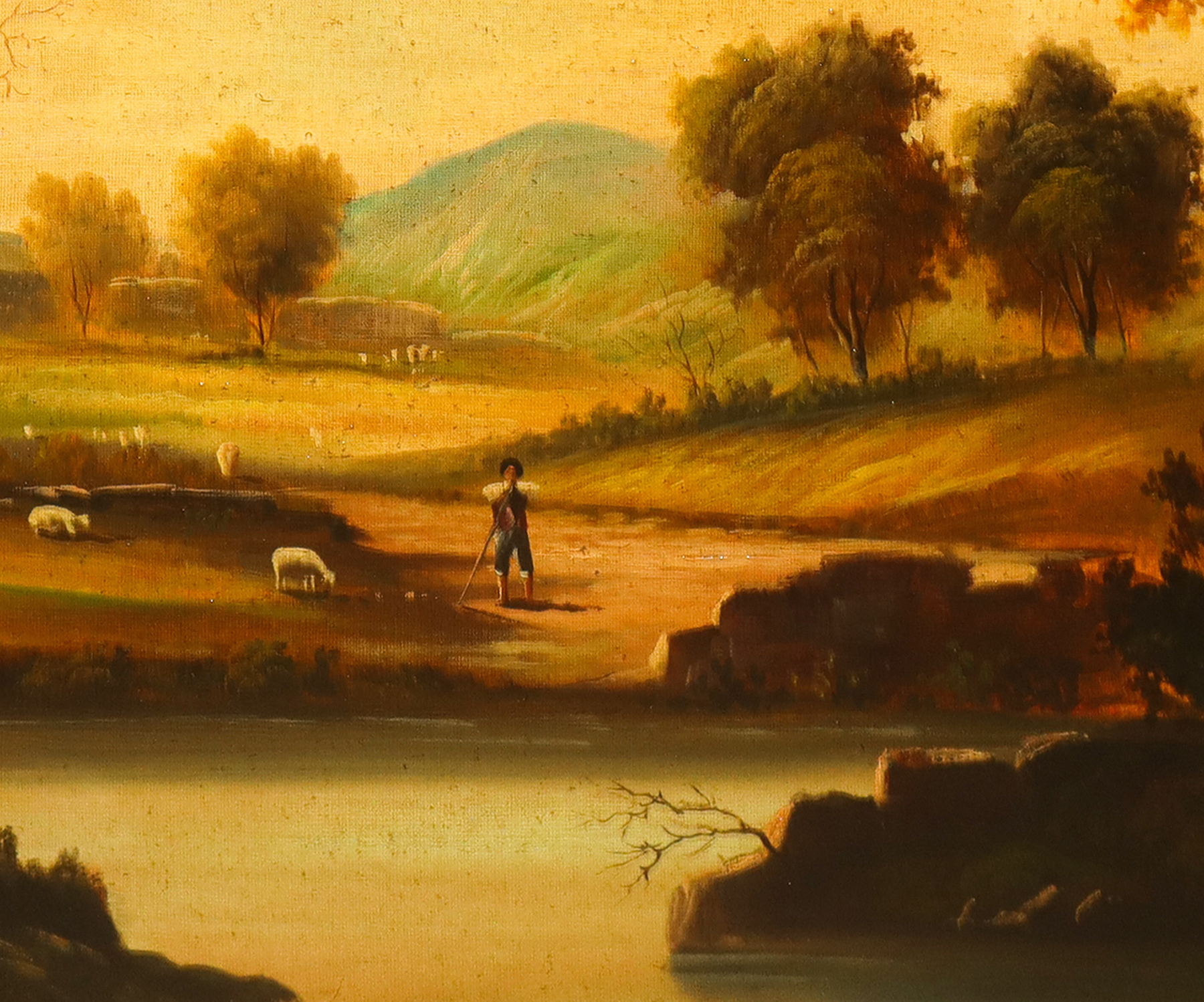 Paesaggio lacustre h cm 40X50 in cornice h cm 76X84 olio su tela