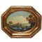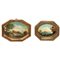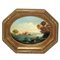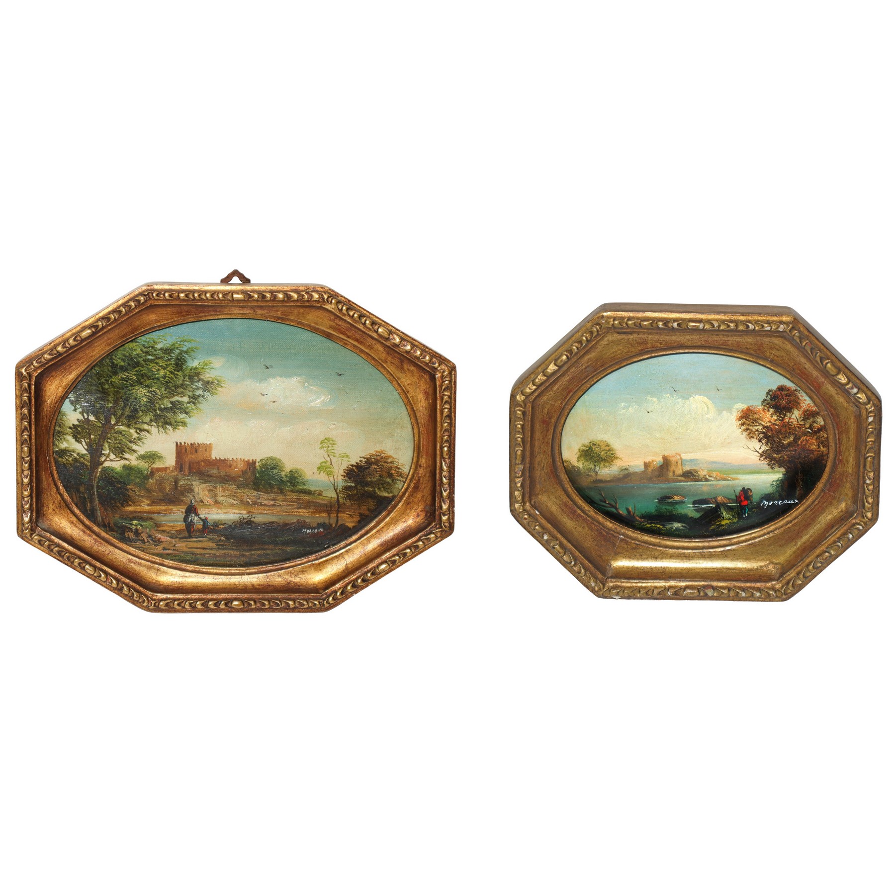 Paesaggio lacustre con castello, coppia di dipinti in cornici ottagonali