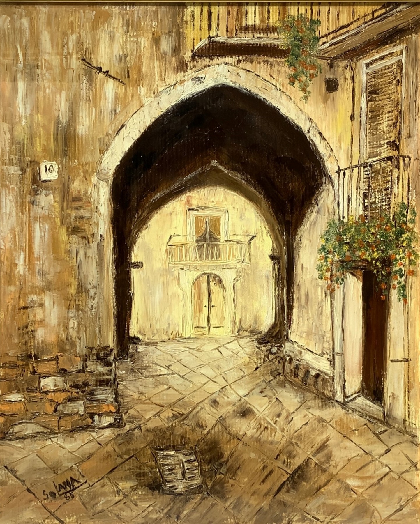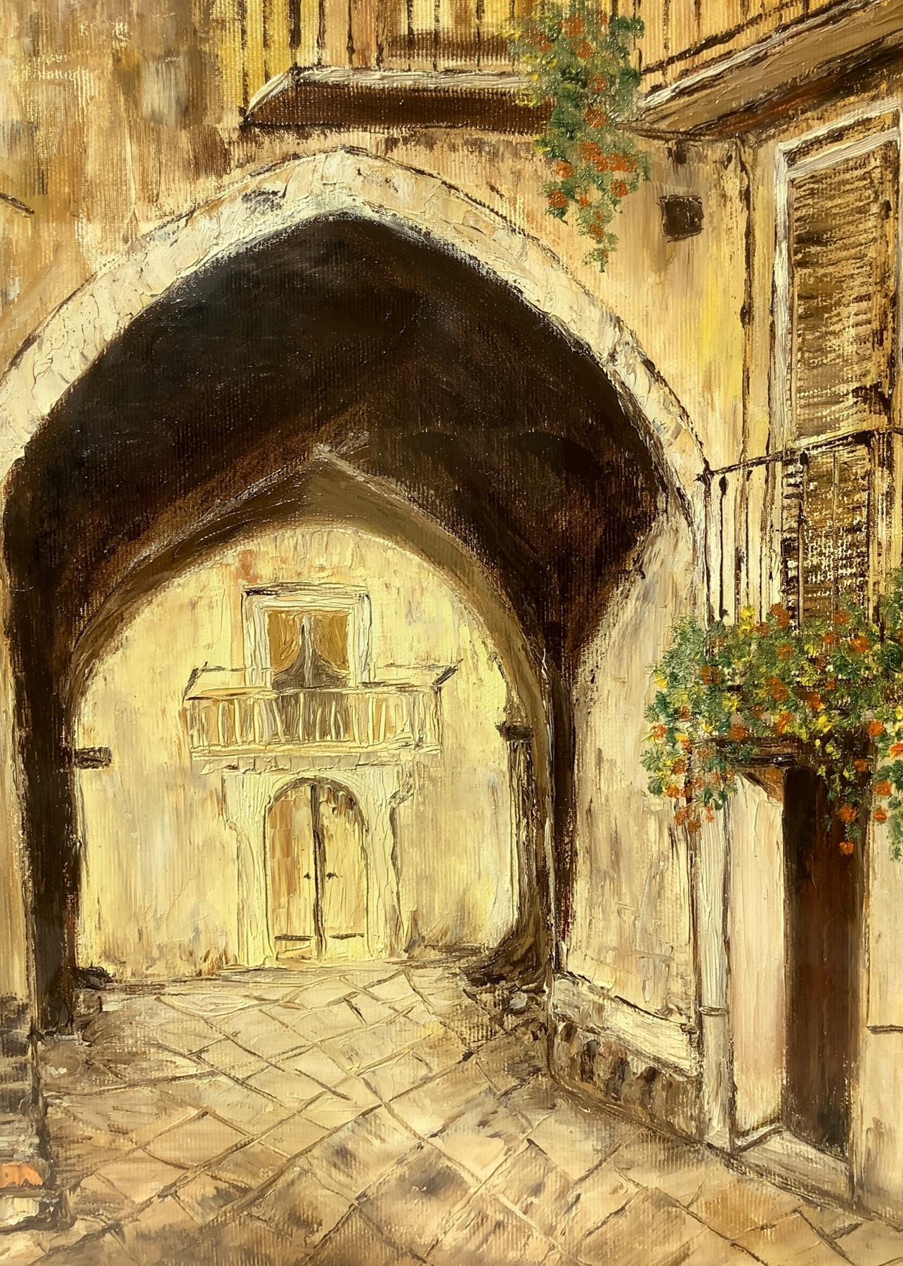 Lot 77 | Strada di paese con arco a sesto acuto.
