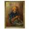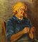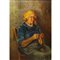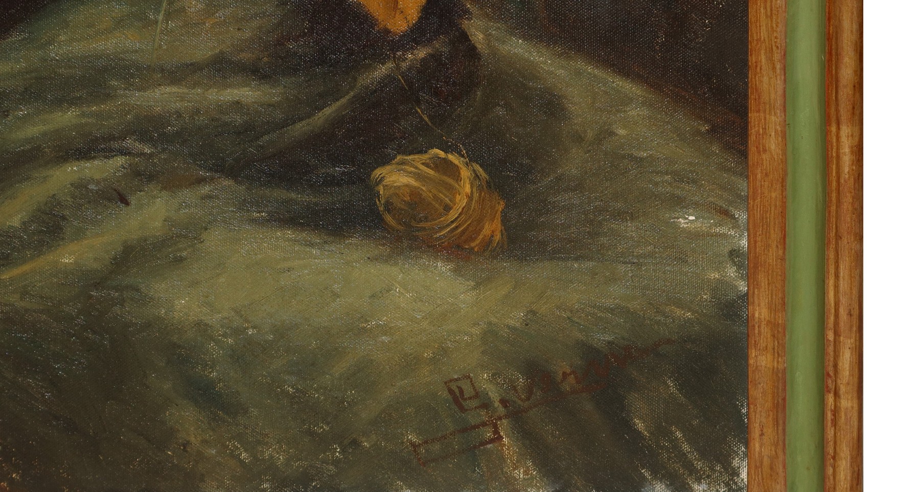 Donna che lavora ai ferri la lana h cm 85X60 in cornice h cm 94X69 olio su tela