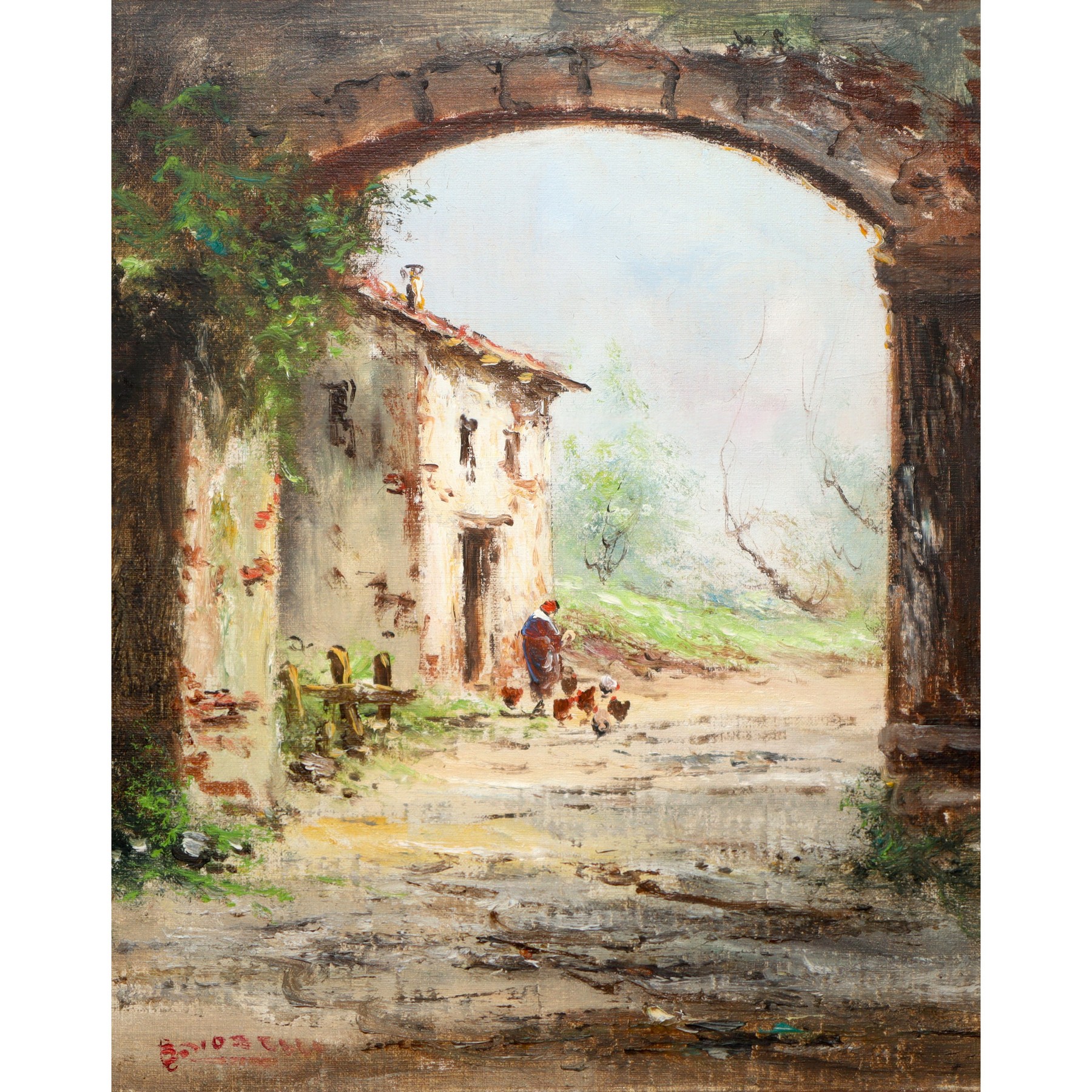 Anton Brioschi (Vienna 1855 - Vienna 1910) - Coppia di paesaggi cm 26X19,5 In cornice cm 50x44 Olio su tela