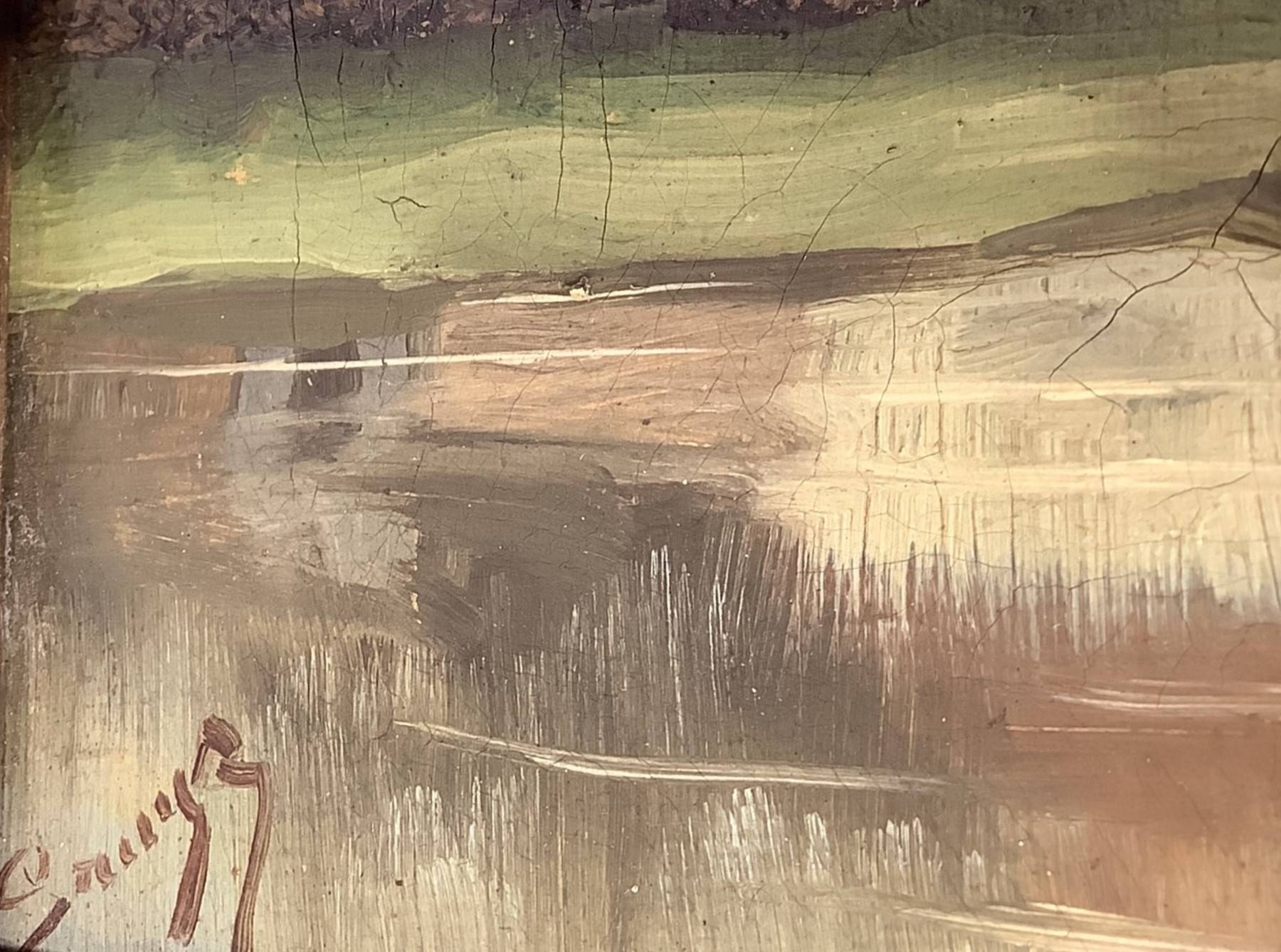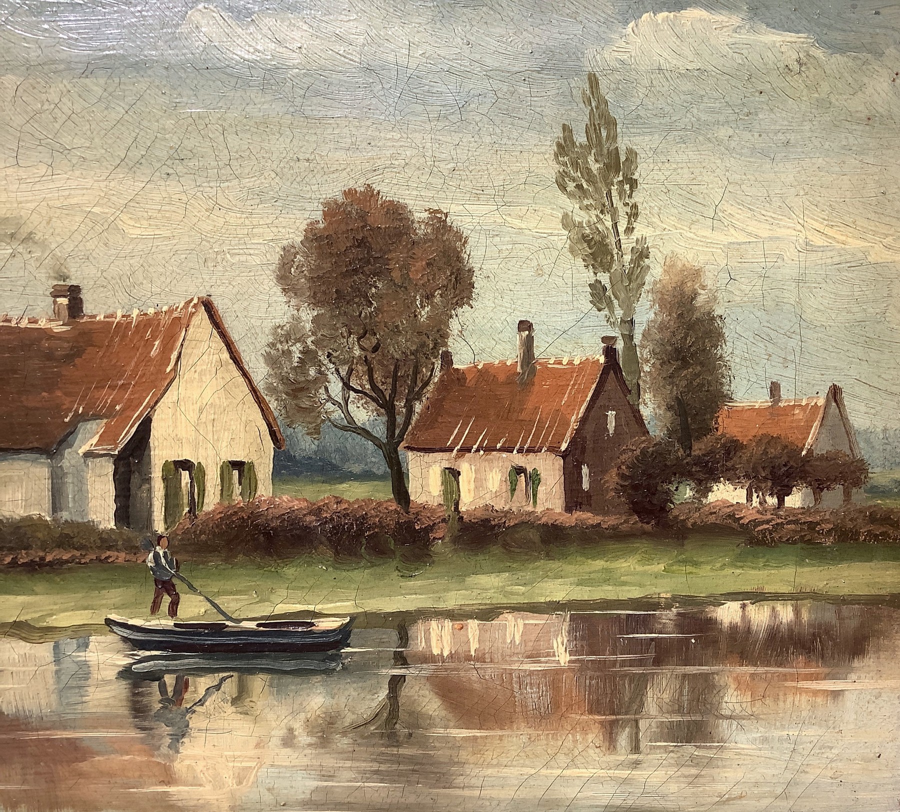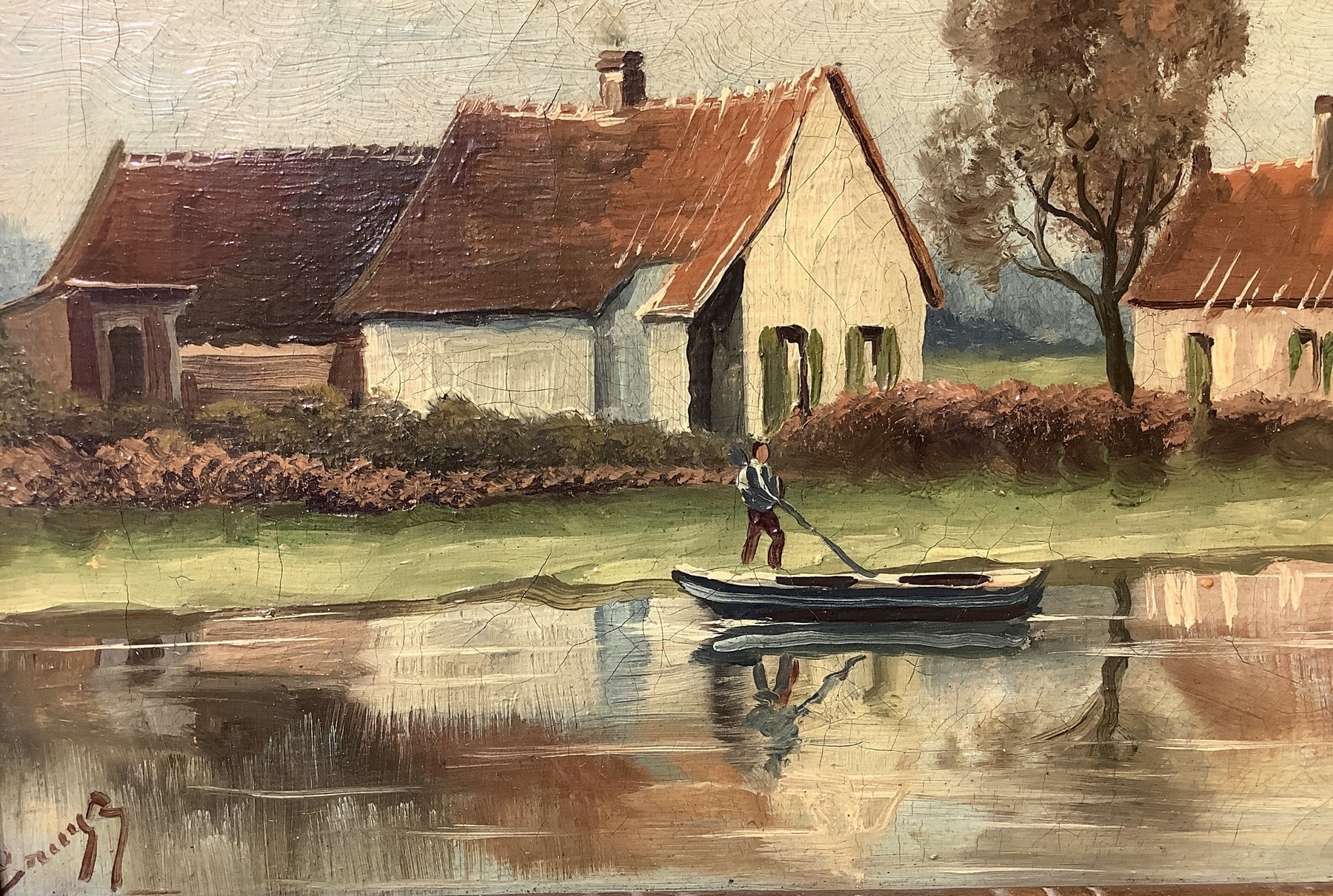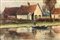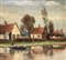 Paesaggio case sul lago Cm 18x26, in cornice cm 24x32 olio su tela