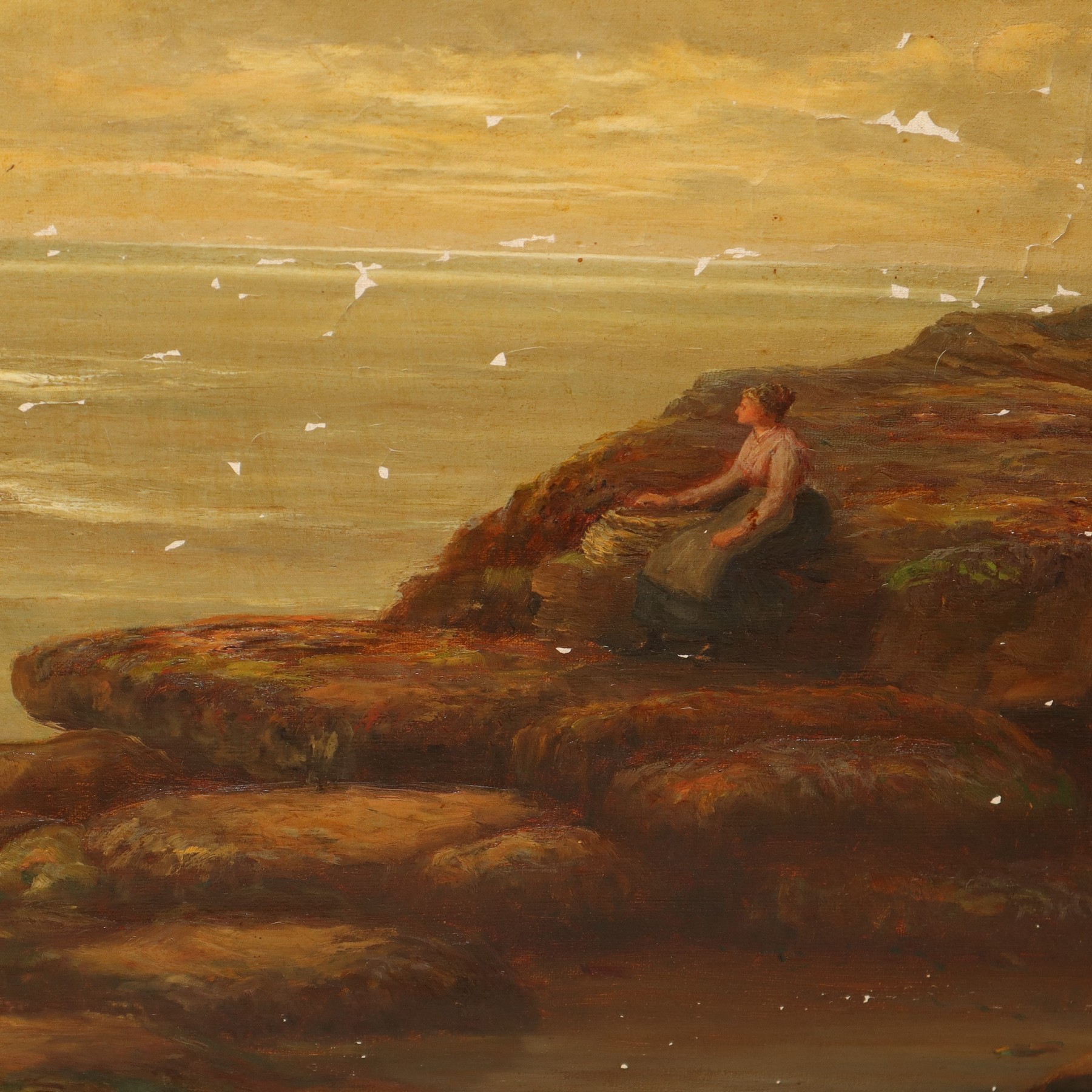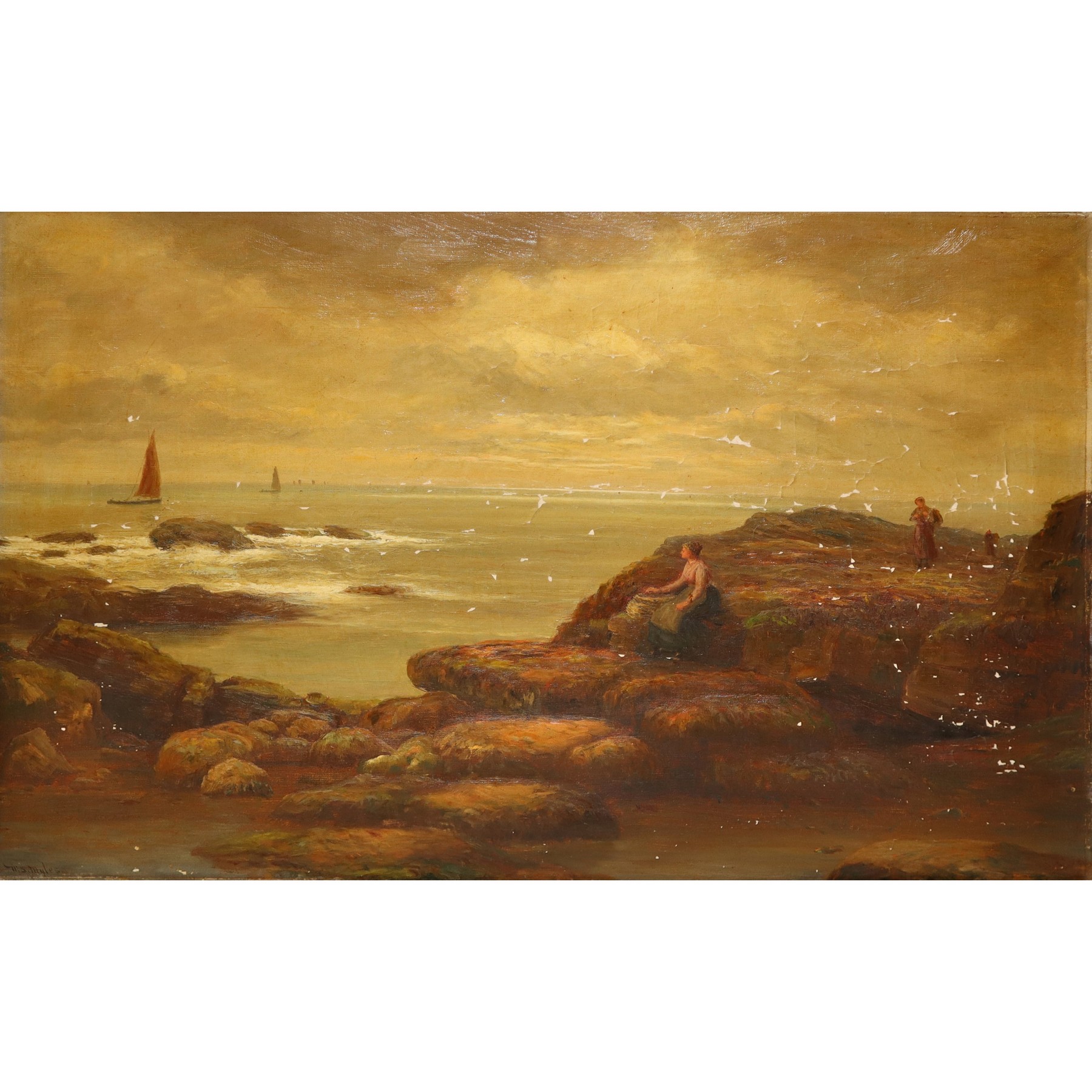 William Scott Myles (1850 - 1911) - Marina con barche h cm 52X76 in cornice h cm 71X96 Olio su tela
