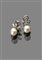 COPPIA DI ORECCHINI Coppia orecchini in oro bianco con due perle giapponesi diam mm 10,00 e diamanti taglio 8/8 per complessivi ct 0,25 ca Peso gr 9,30 Pari of white gold earrigns with 10.00 mm japanese pearls with 8/8 cut diamonds for an apporx total of 0,25 Weight 9.30 gr