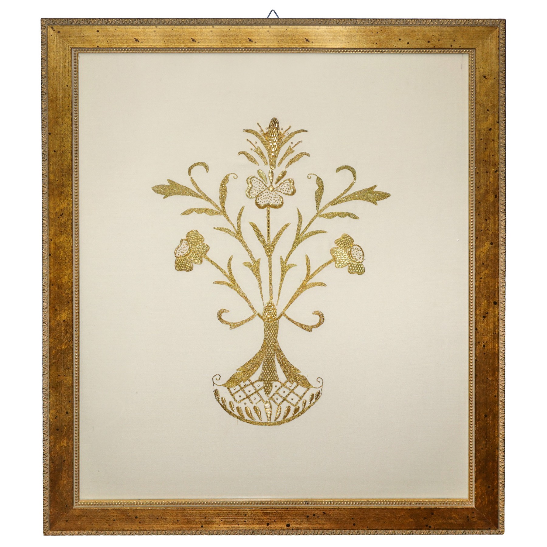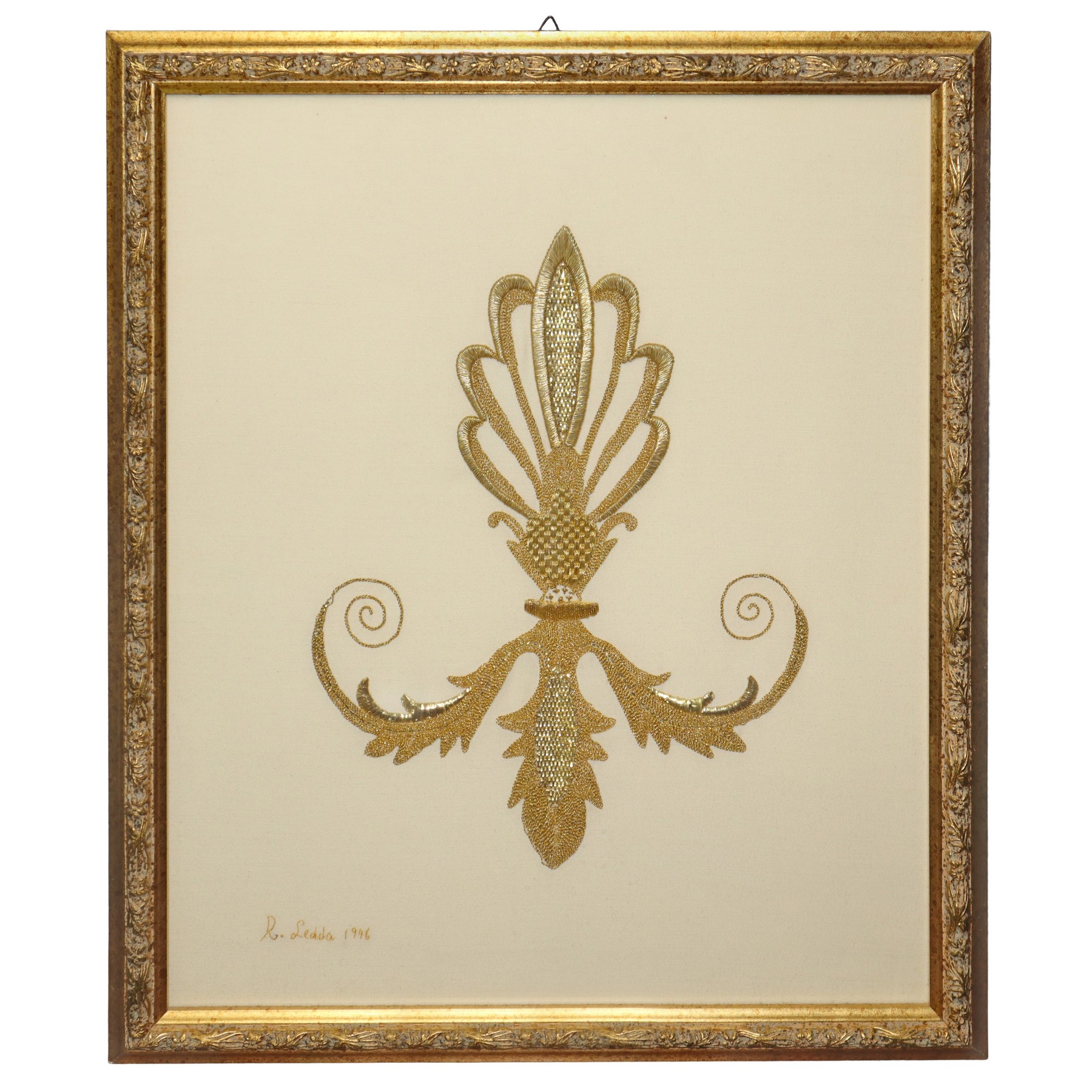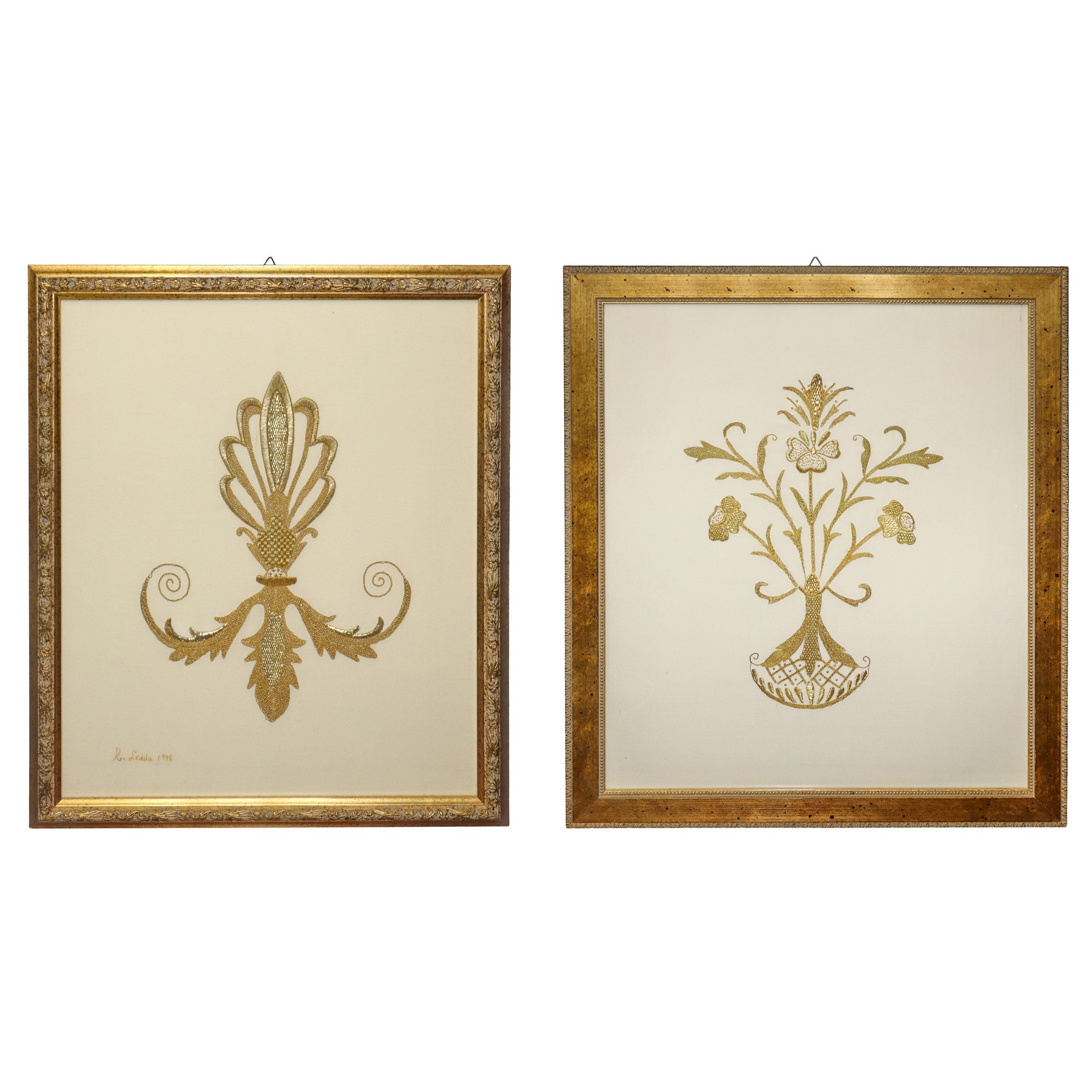 Lot 109 | Coppia di ricami in oro all'interno di cornici in legno dorate