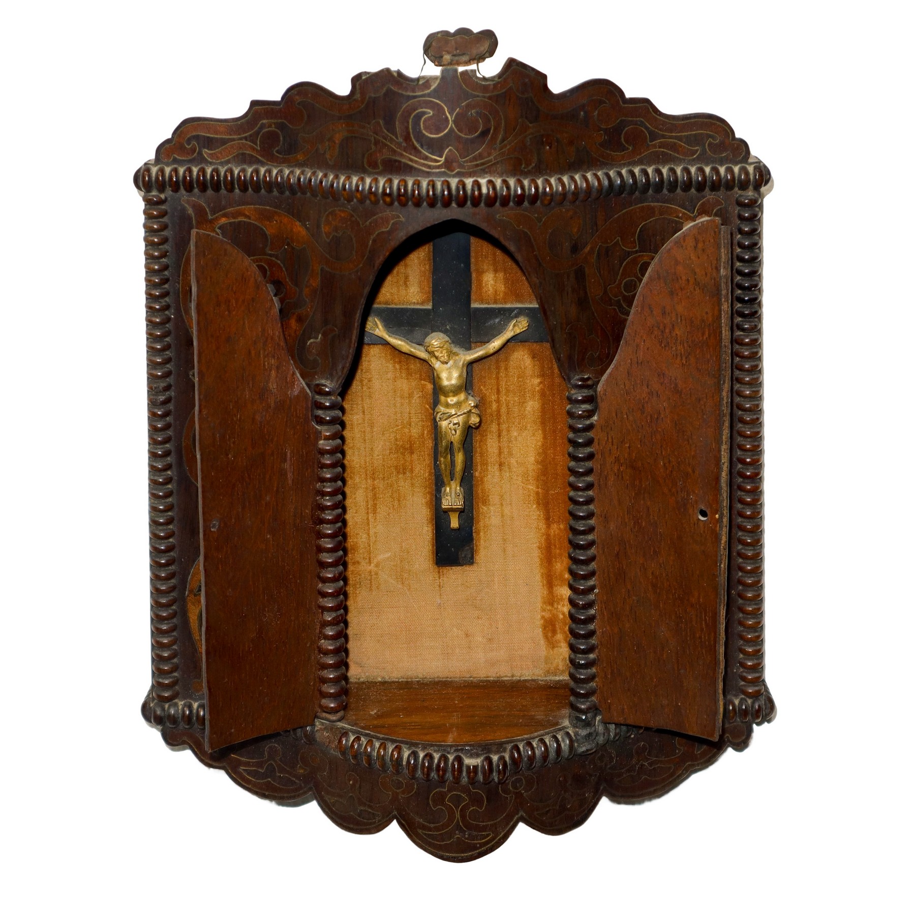Piccolo altare da viaggio con crocifisso all'interno h cm 26X19,5 Presente piccola rottura
