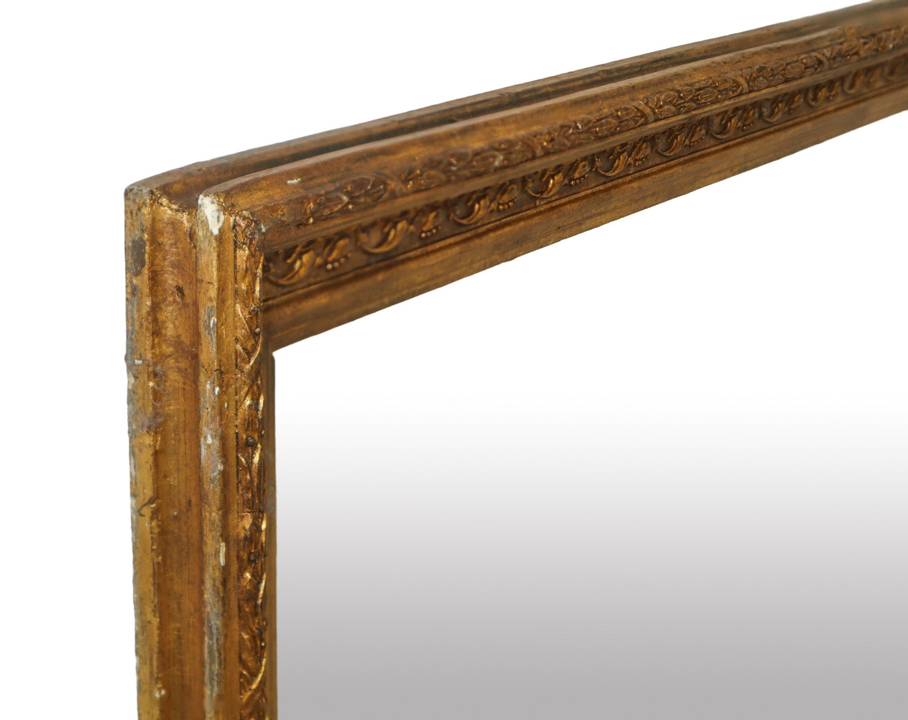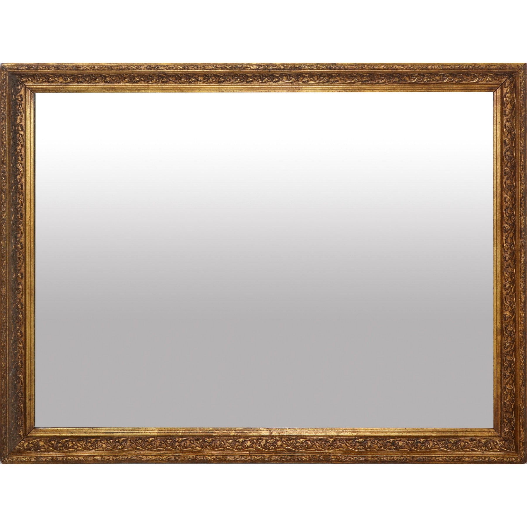 Specchiera in cornice a pastiglia in legno dorato decorata a rilievi floreali