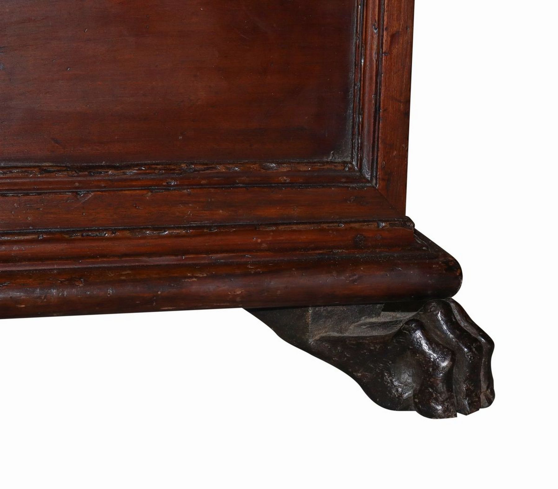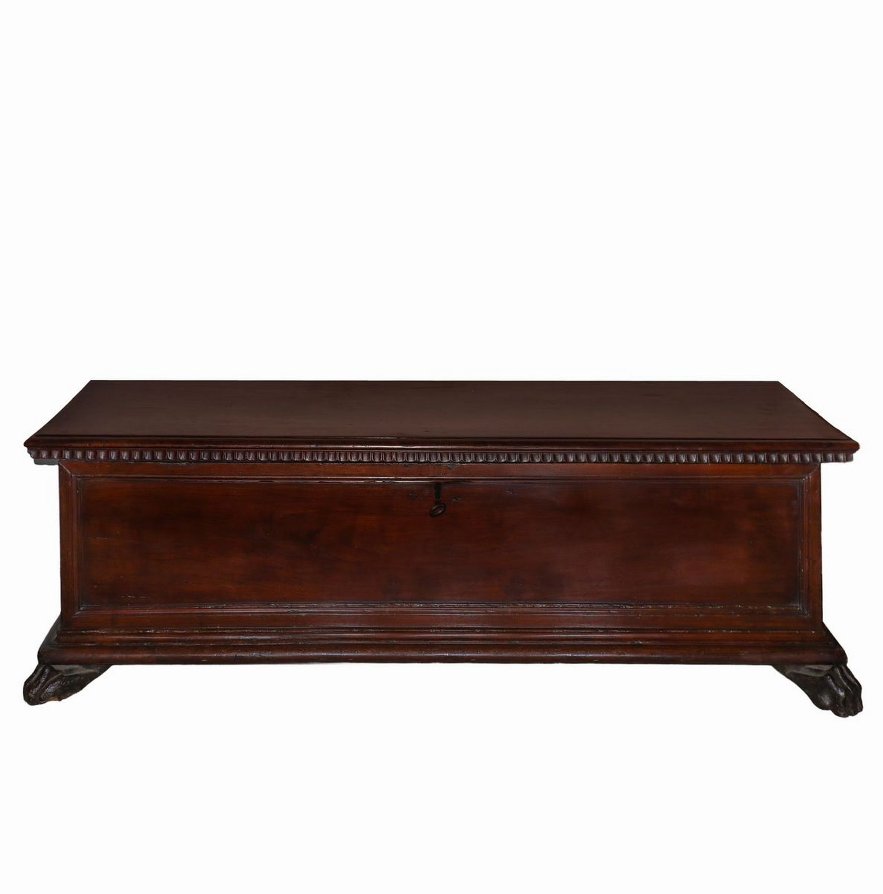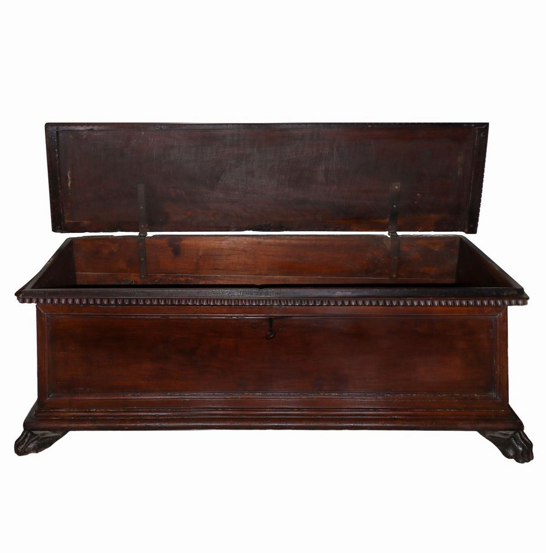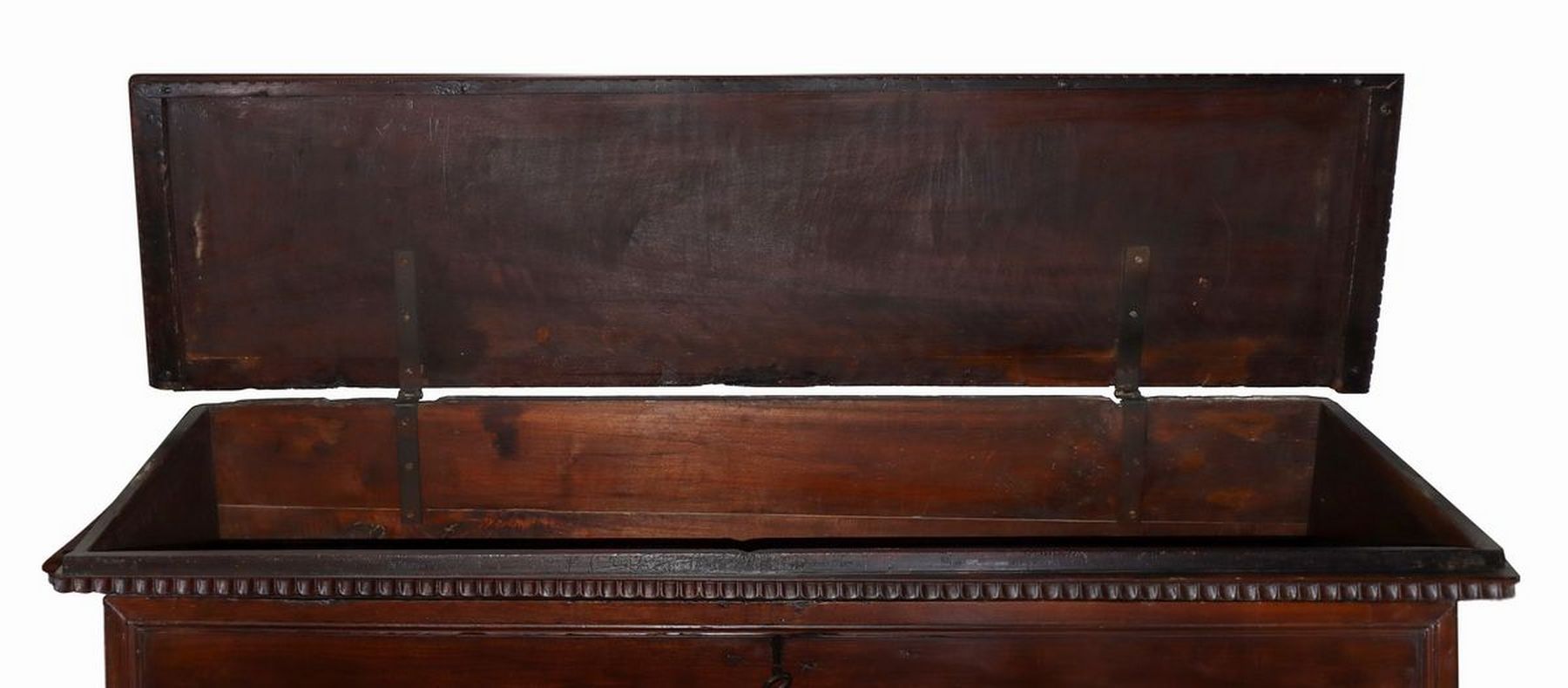 Cassapanca in legno di noce h cm 53 x 170 x 55 Cornice dentellata, piede leonino