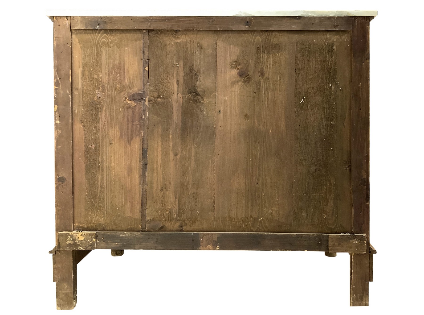 Cassettone a quattro cassetti in legno di noce con mezze colonne ai lati, piedi a cipolla e marmo bianco al piano h cm 104 x l cm 114 x p 55 legno di noce
