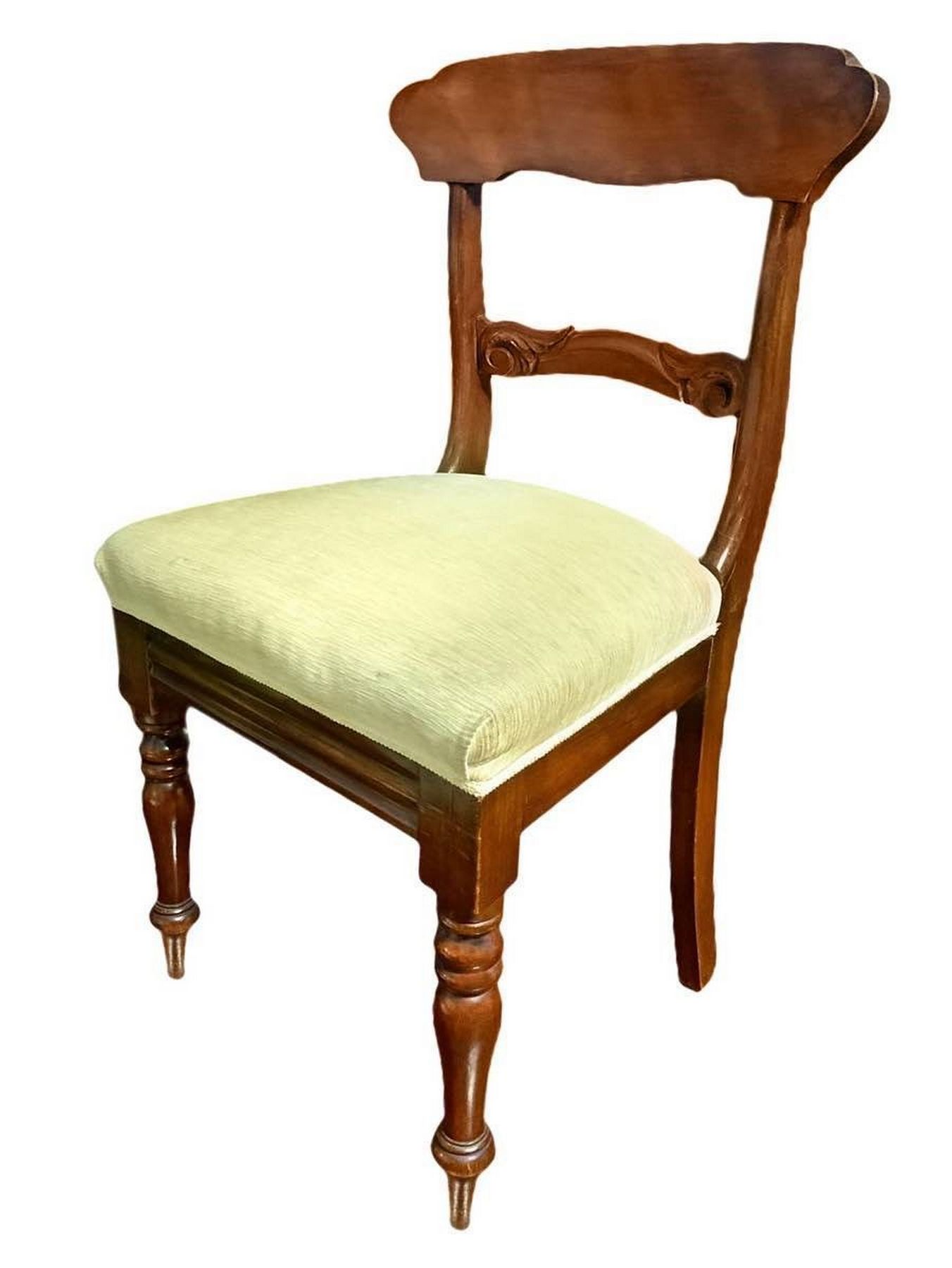 Tavolo rotondo in mogano allungabile con quattro sedie e allunghi di servizio Tavolo H cm 82, diametro cm 137. Quattro sedie spalliera h cm 92. Allunghi di servizio cm 50 cadauno