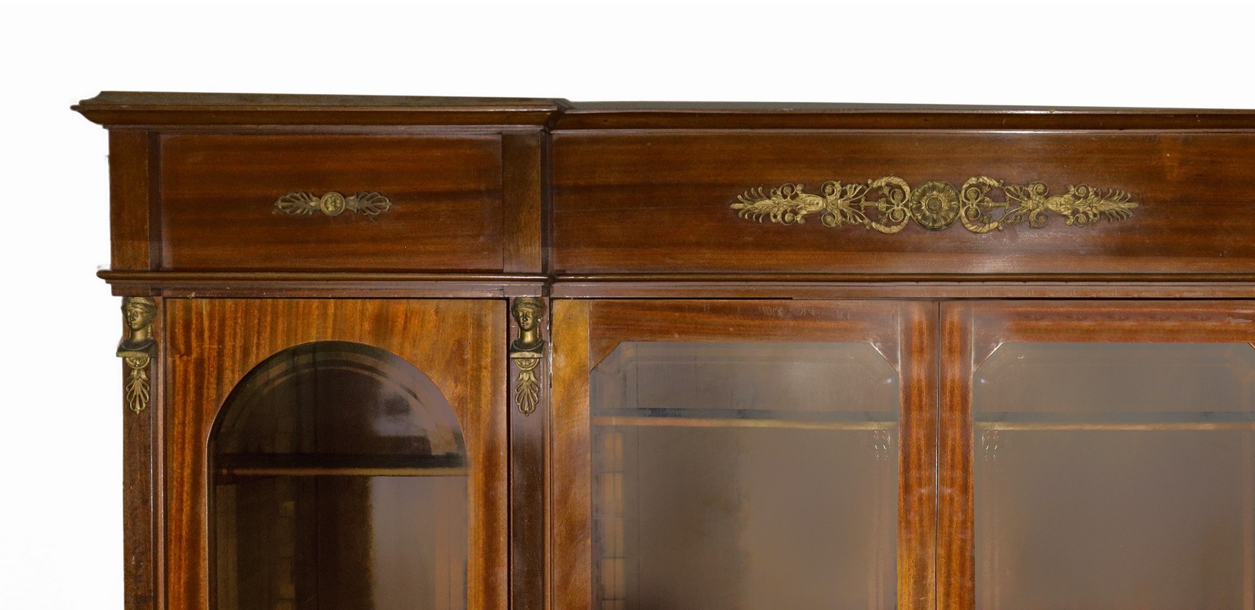 Bronzi neoclassici e cariatidi applicati alla base e agli sportelli.