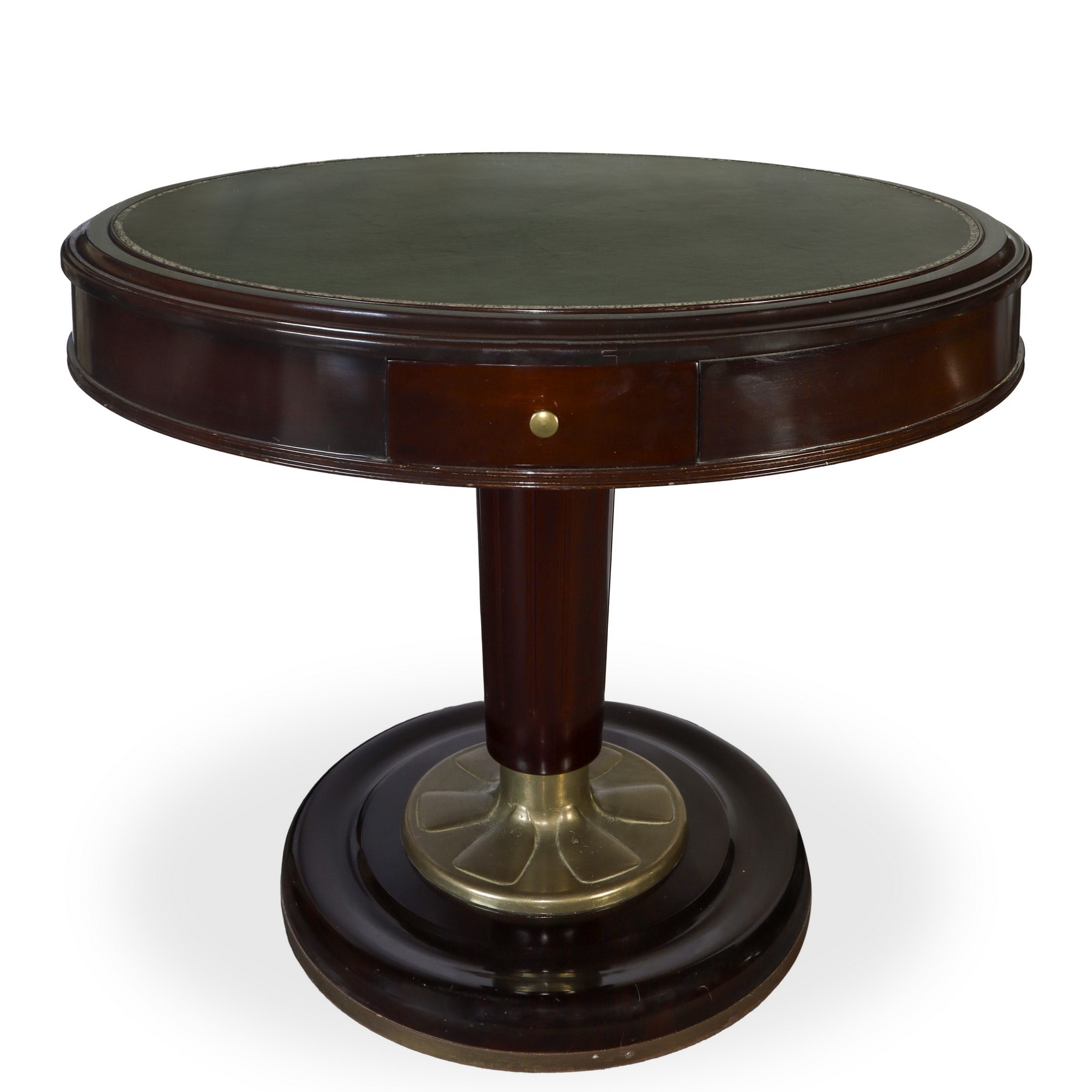 Lot 226 | Tavolo rotondo da gioco con piano double-face con pelle verde in legno di mogano e ottone