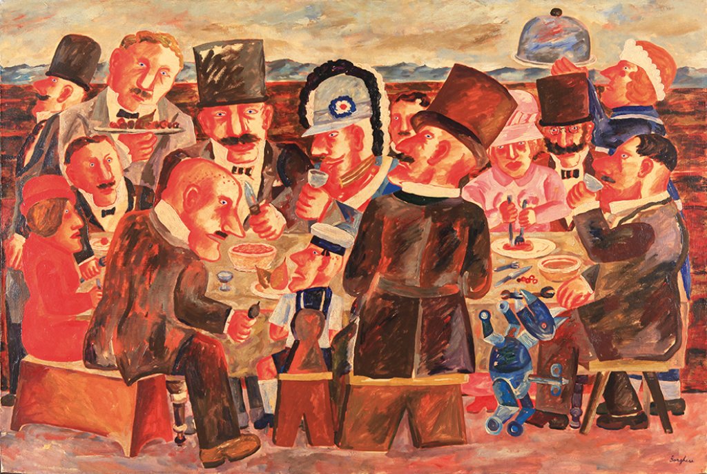 FRANZ BORGHESE (1941-2005) Personaggi olio su tela cm 100x150firmato in basso...
