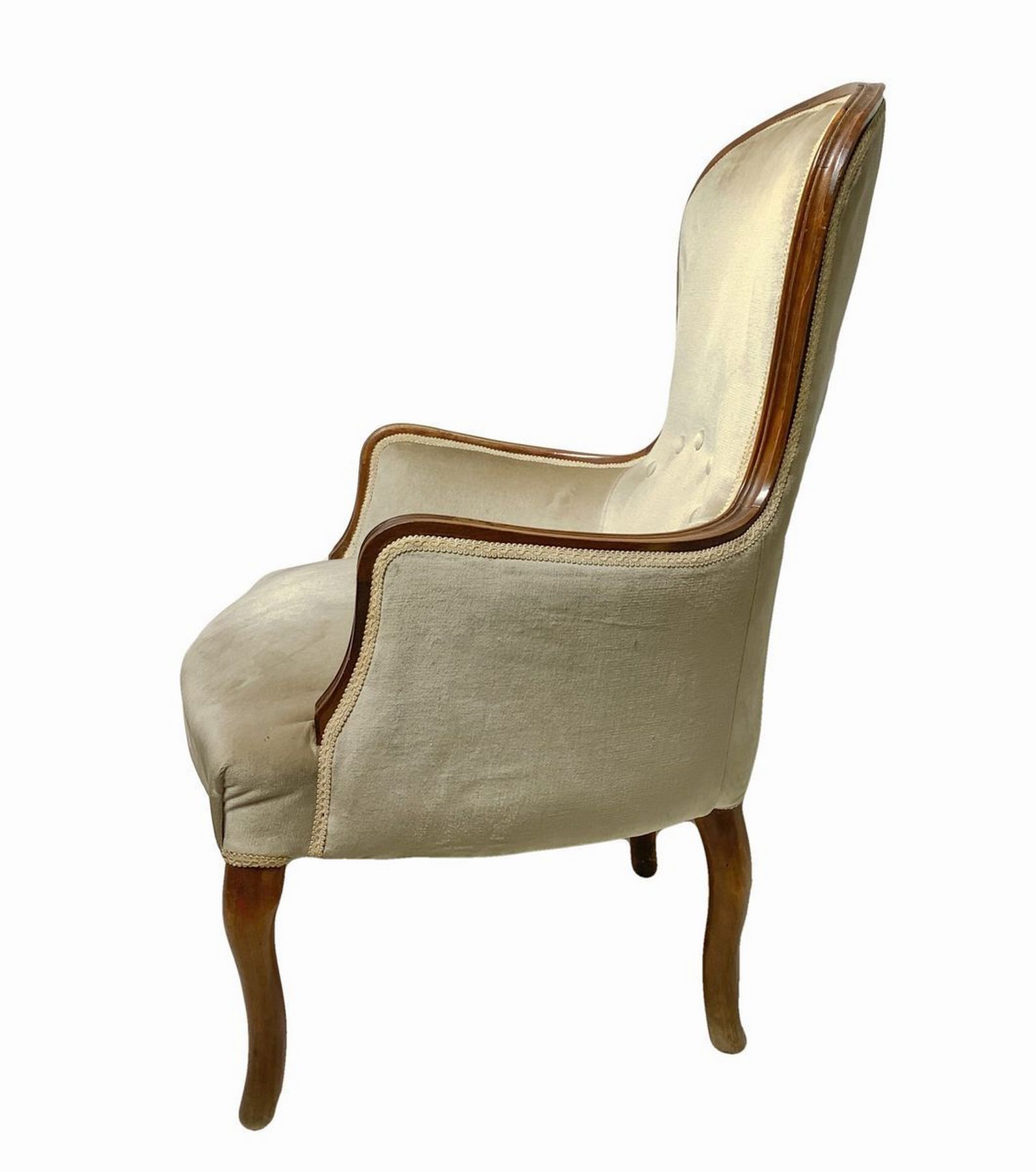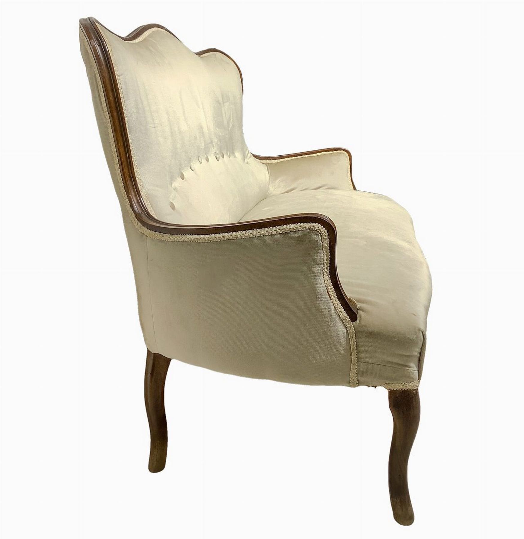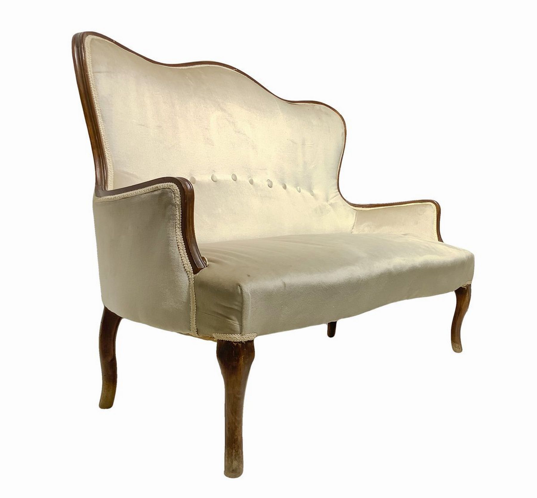 Salotto composto da divanetto e due poltrone, primi 20° secolo In stile Luigi Filippo, imbottitura a molle, tapezzeria in velluto beige, struttura in legno di noce chiara. Segni di usura.In stile Luigi Filippo, imbottitura a molle, tapezzeria in velluto beige, struttura in legno di noce chiara. Segni di usura.