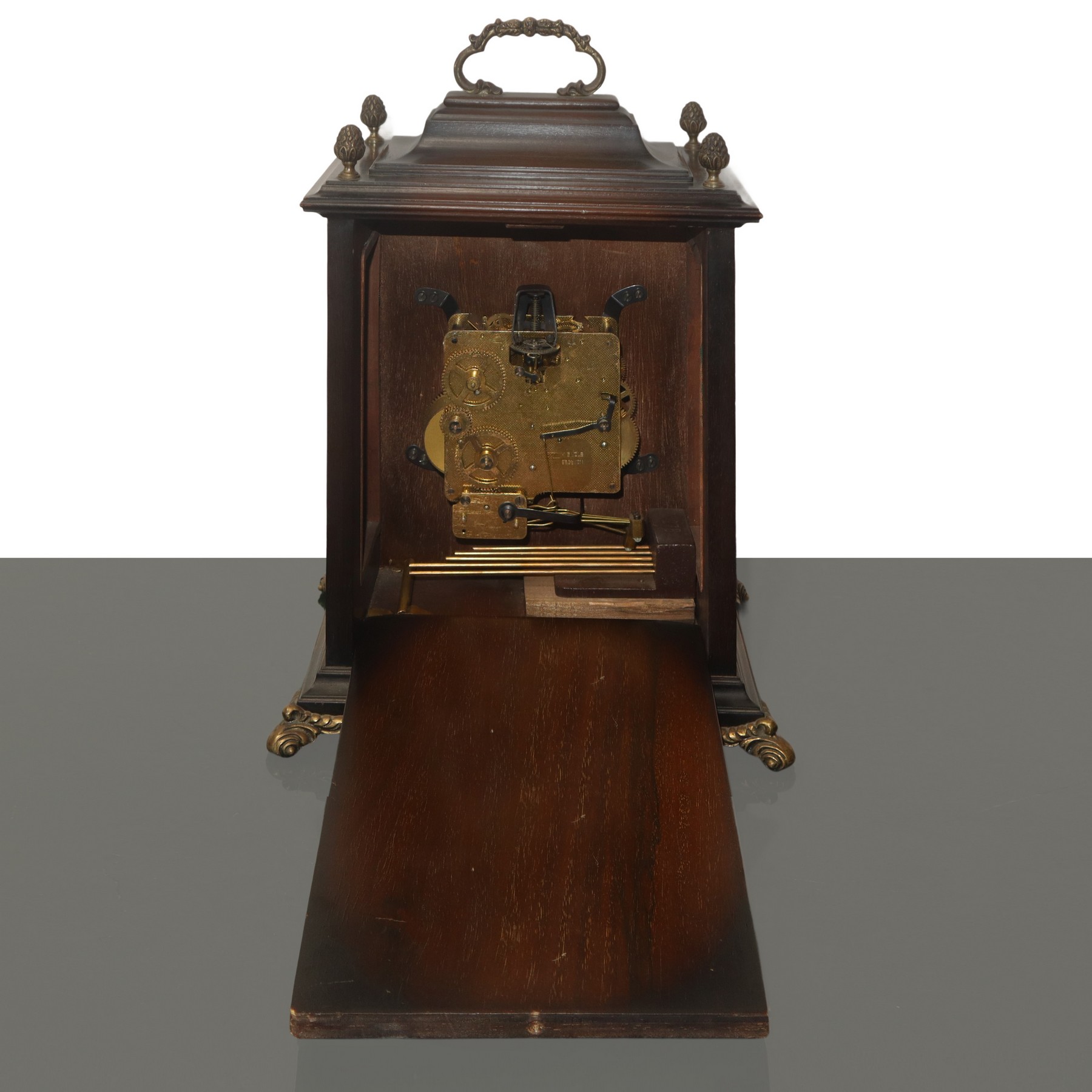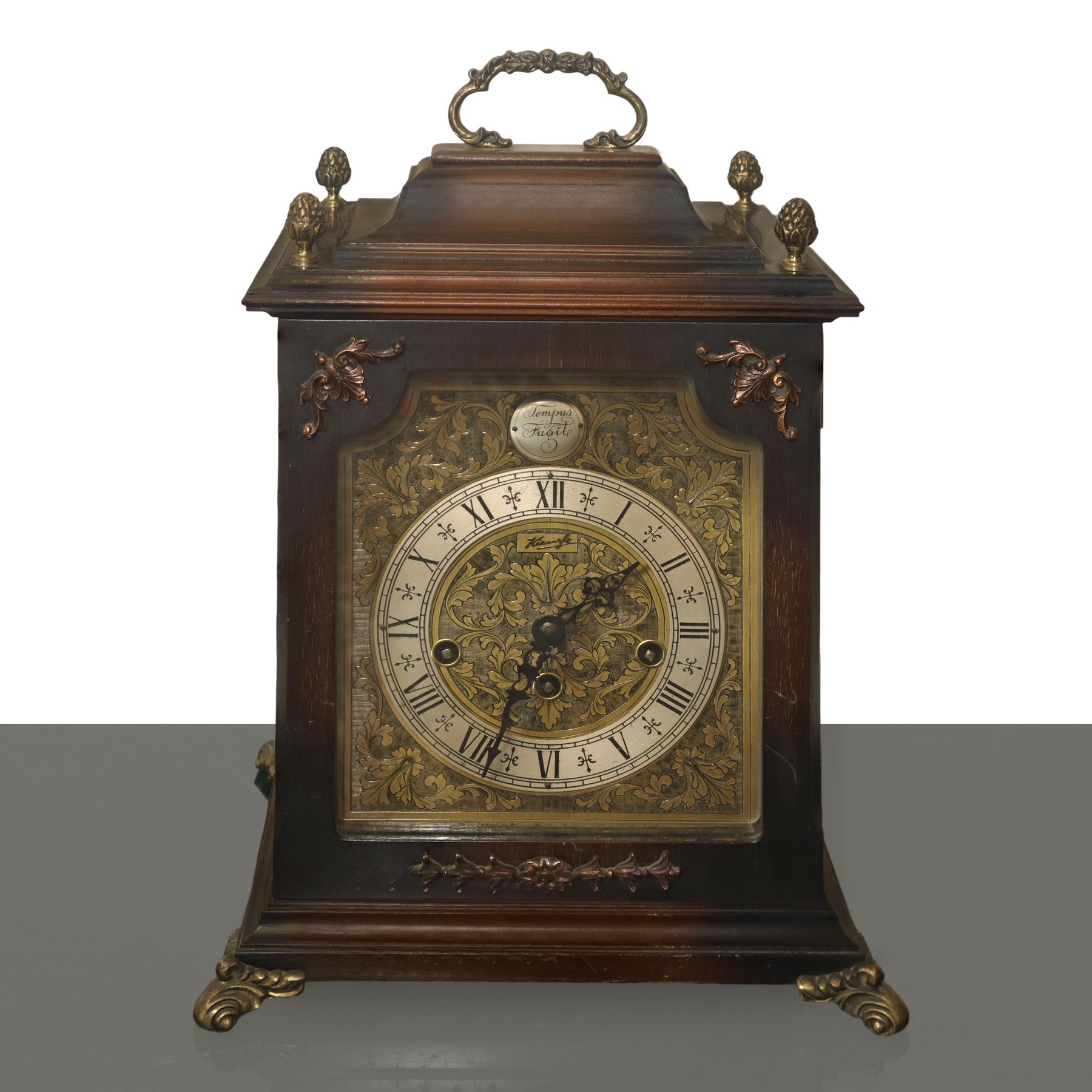 Kienzle - Orologio da tavolo tempus fugit con cassa in legno marrone e quadrante riccamente decorato h cm 40X24X17 Dettagli in ottone e pigne in ottone ai 4 lati superiori.