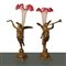 Coppia di candelieri in metallo dorato e fiori in vetro colorato h cm 48