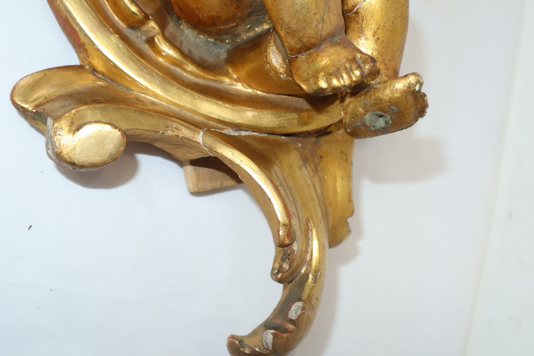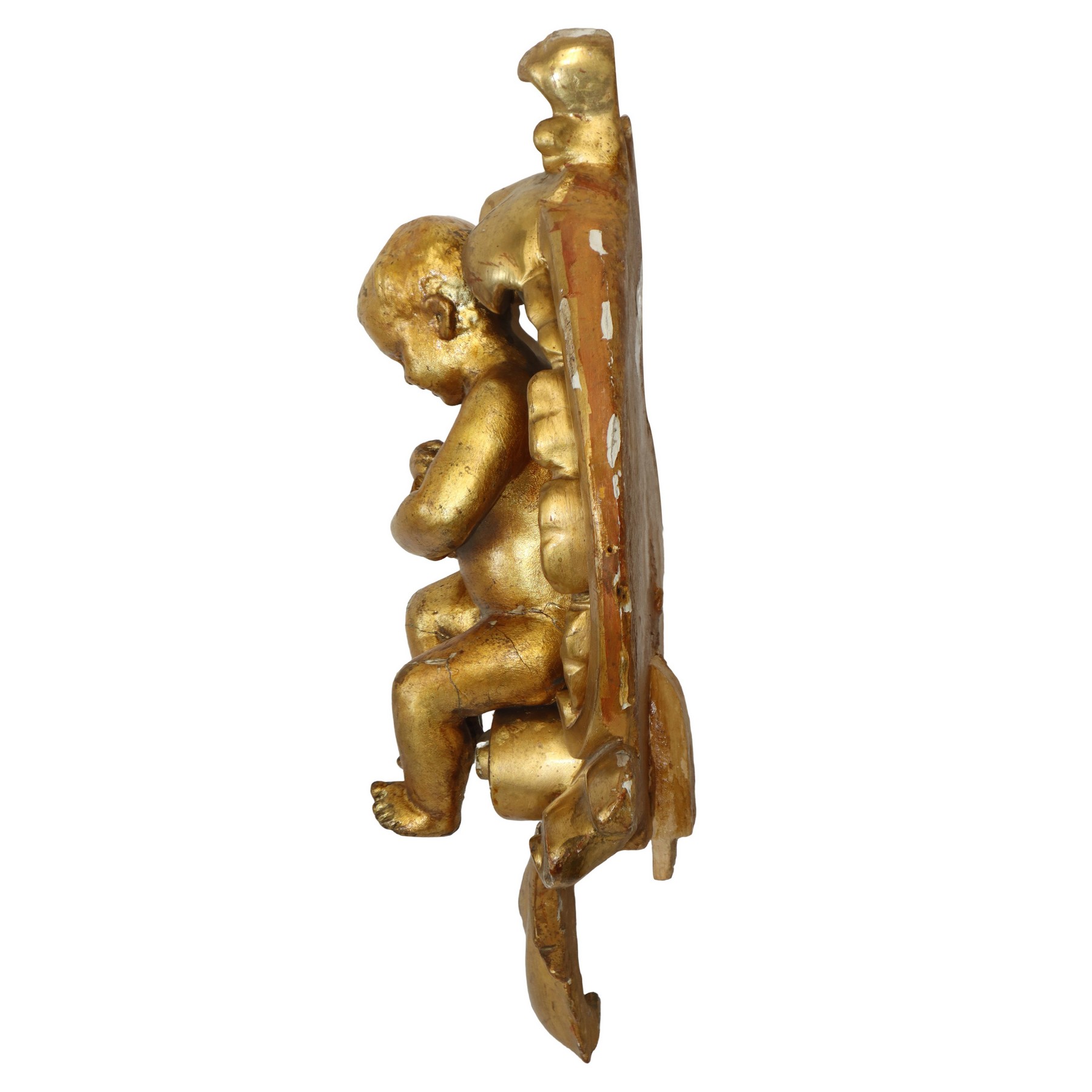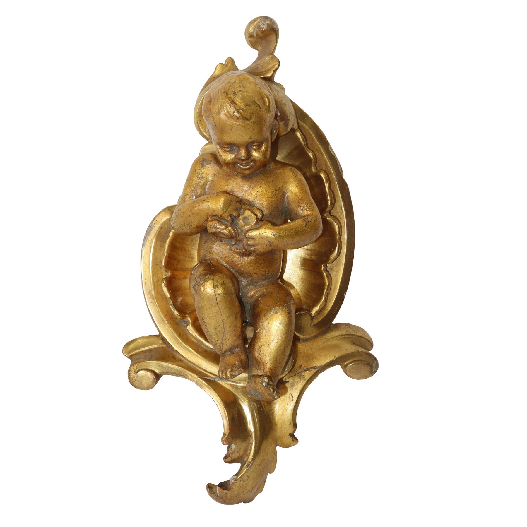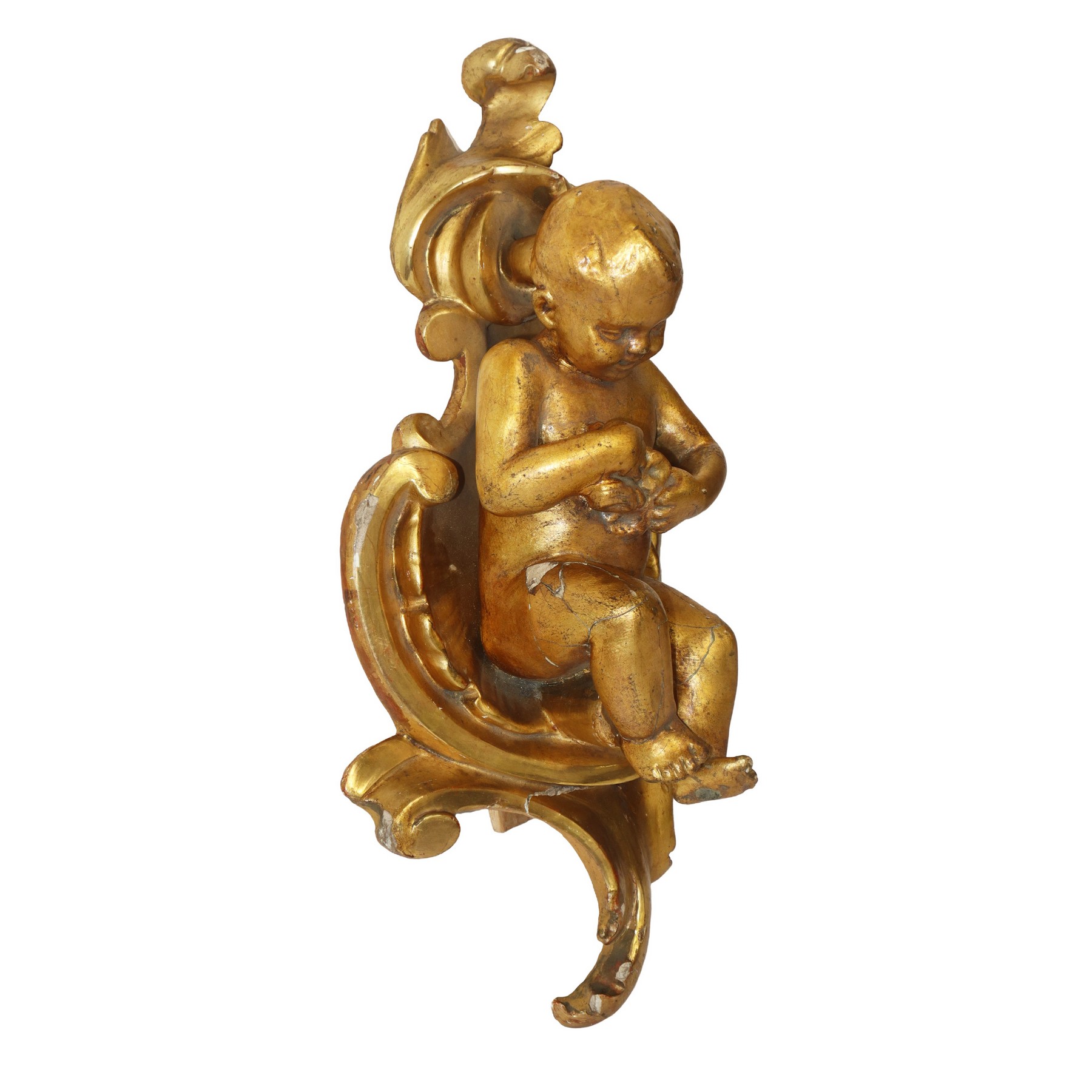 Lot 291 | Putto in terracotta dorata a foglia in conchiglia di legno dorato