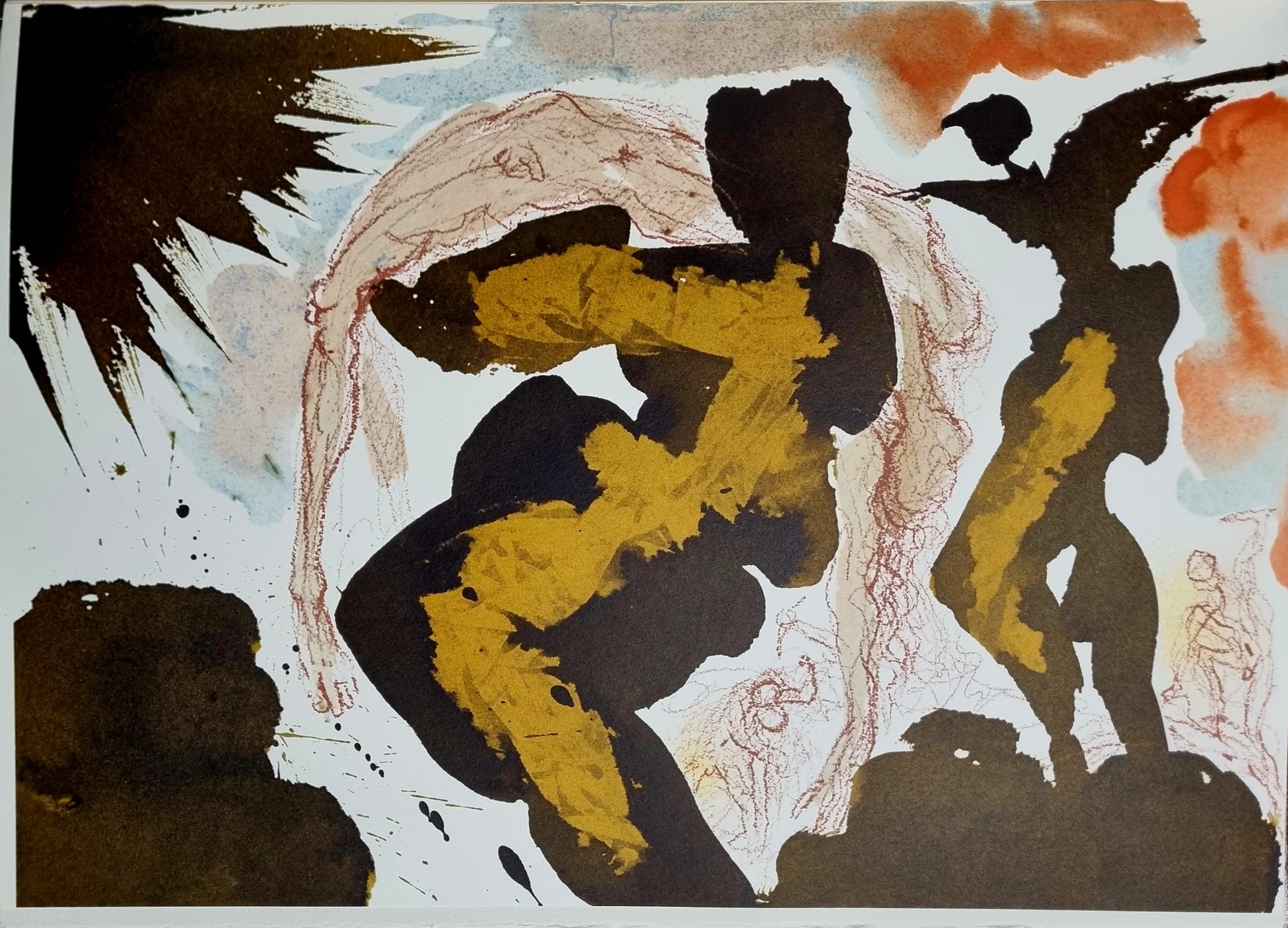 DALI' SALVADOR Spagna 1904 - 1989 "Biblia Sacra - Vulgatae Editionis" "Contigit autem et septem frates una cum sua apprehensos compelli a rege edere contra fas carnes porcinas" Serigrafia su cartoncino pesante cm 48,5x35. Pubblicata a pag. 328/bis del vol. II "Biblia Sacra - Vulgatae Editionis", Rizzoli Editore 1967, tiratura 145/1499.