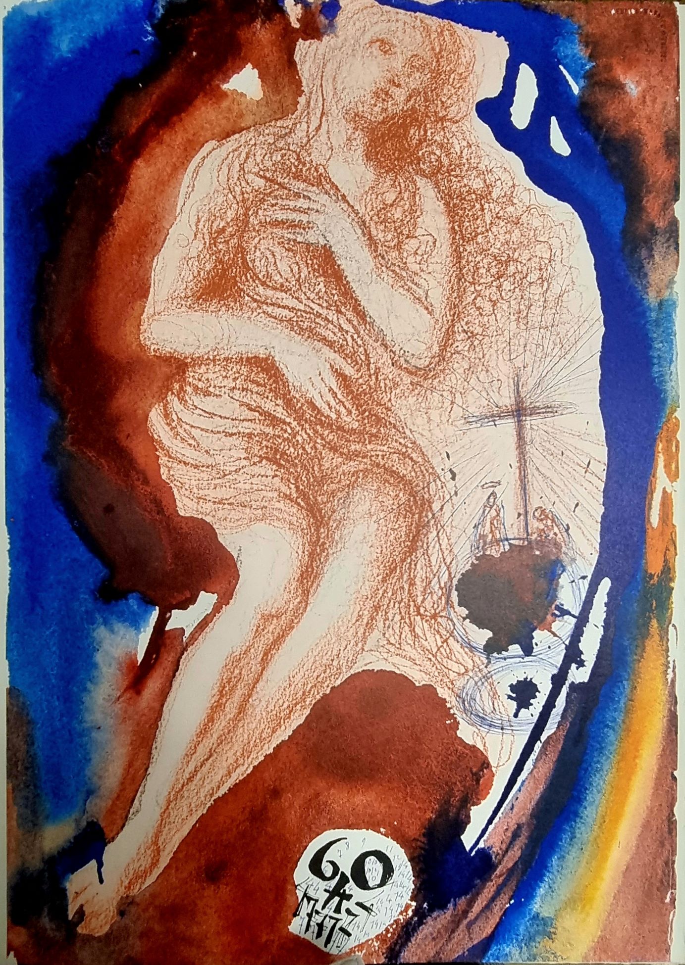 DALI' SALVADOR Spagna 1904 - 1989 "Biblia Sacra - Vulgatae Editionis" "Et ecce mulier, quae erat in civitate peccatrix... lacrymis coepit rigare pedes eius, et capillis capitis sui tergebat et osculabatur..." Serigrafia su cartoncino pesante cm 35x48,5. Pubblicata a pag. 152/bis del vol. V "Biblia Sacra - Vulgatae Editionis", Rizzoli Editore 1967, tiratura 145/1499.
