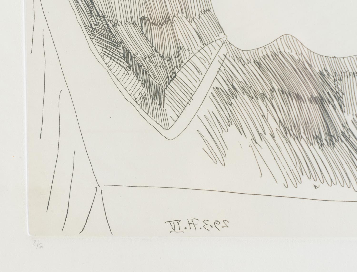 Acquaforte su carta, firmata a stampa in basso a destra, datata in lastra in basso a sinistra "29.3.71.IV", reca a matita numero esemplare 8/50, lastra H cm 36,4x48,7 - foglio H cm 50,5x65,3 - con cornice H cm 63x74,5