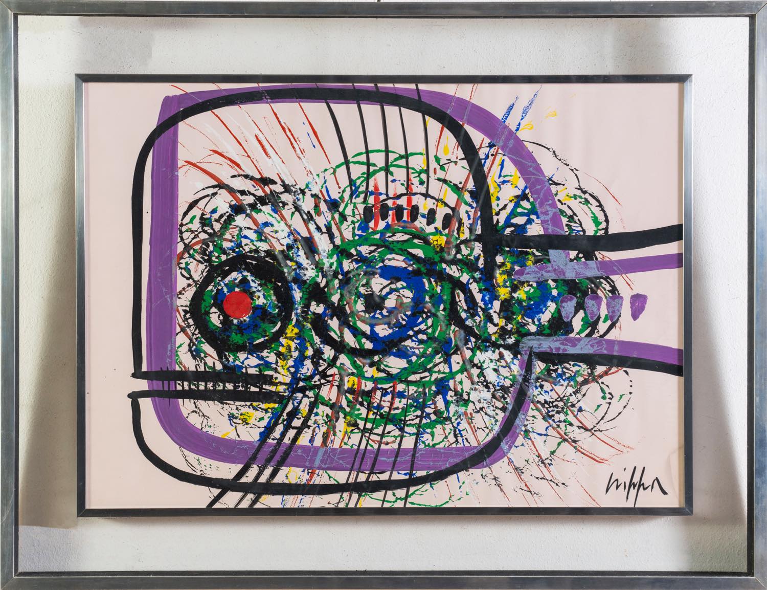 Tenica mista su carta, firmata in basso a destra, H cm 50x70 - con cornice 66,5x87x3,5
