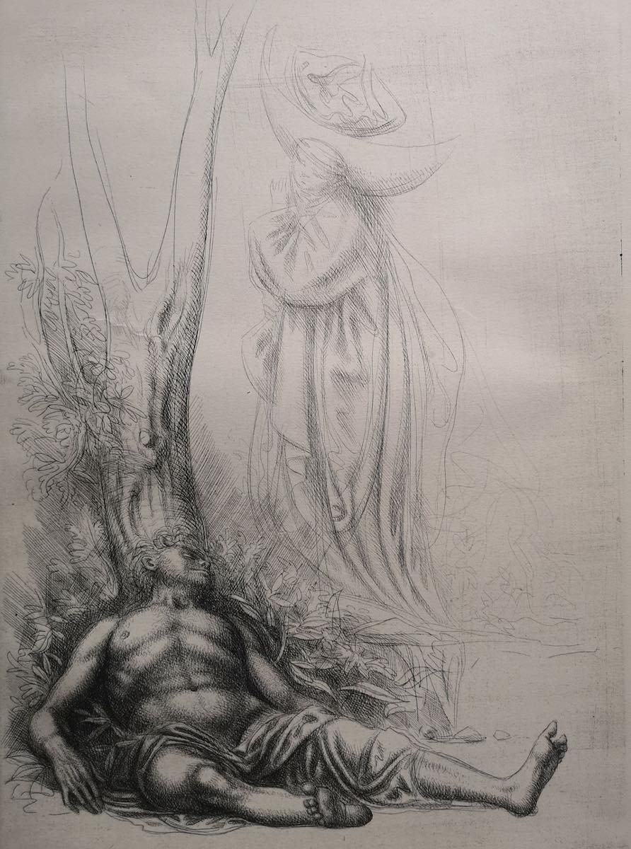 Acquaforte su carta C.M. Fabriano, reca numero esemplare 34/60 in basso a sinistra, e firma e timbro a secco dell'artista in basso a destra, lastra H cm 48,5x34,5 - foglio H cm 70x49