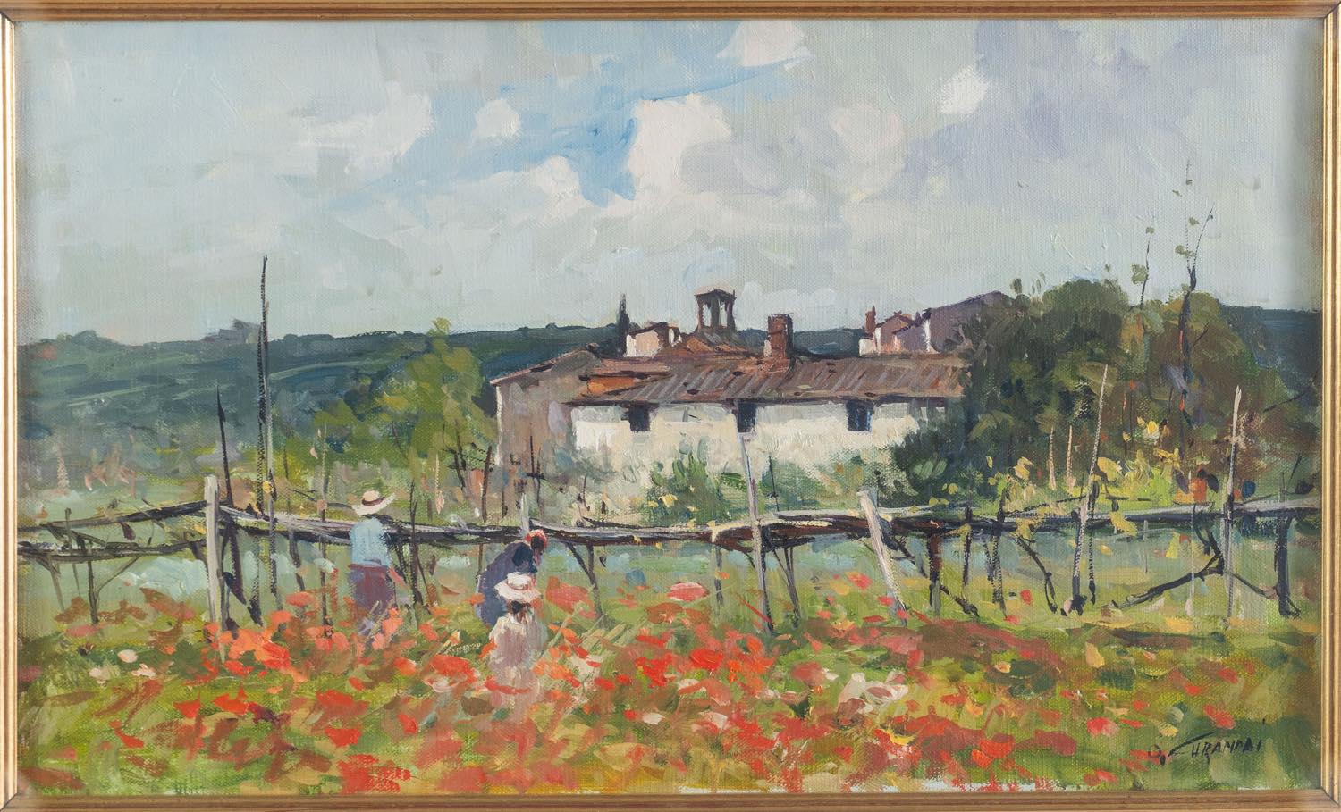 Osvaldo Curandai (Firenze 1931 - Rignano 2019), "Lavori al vigneto (Val d'Arno)", 1975.
