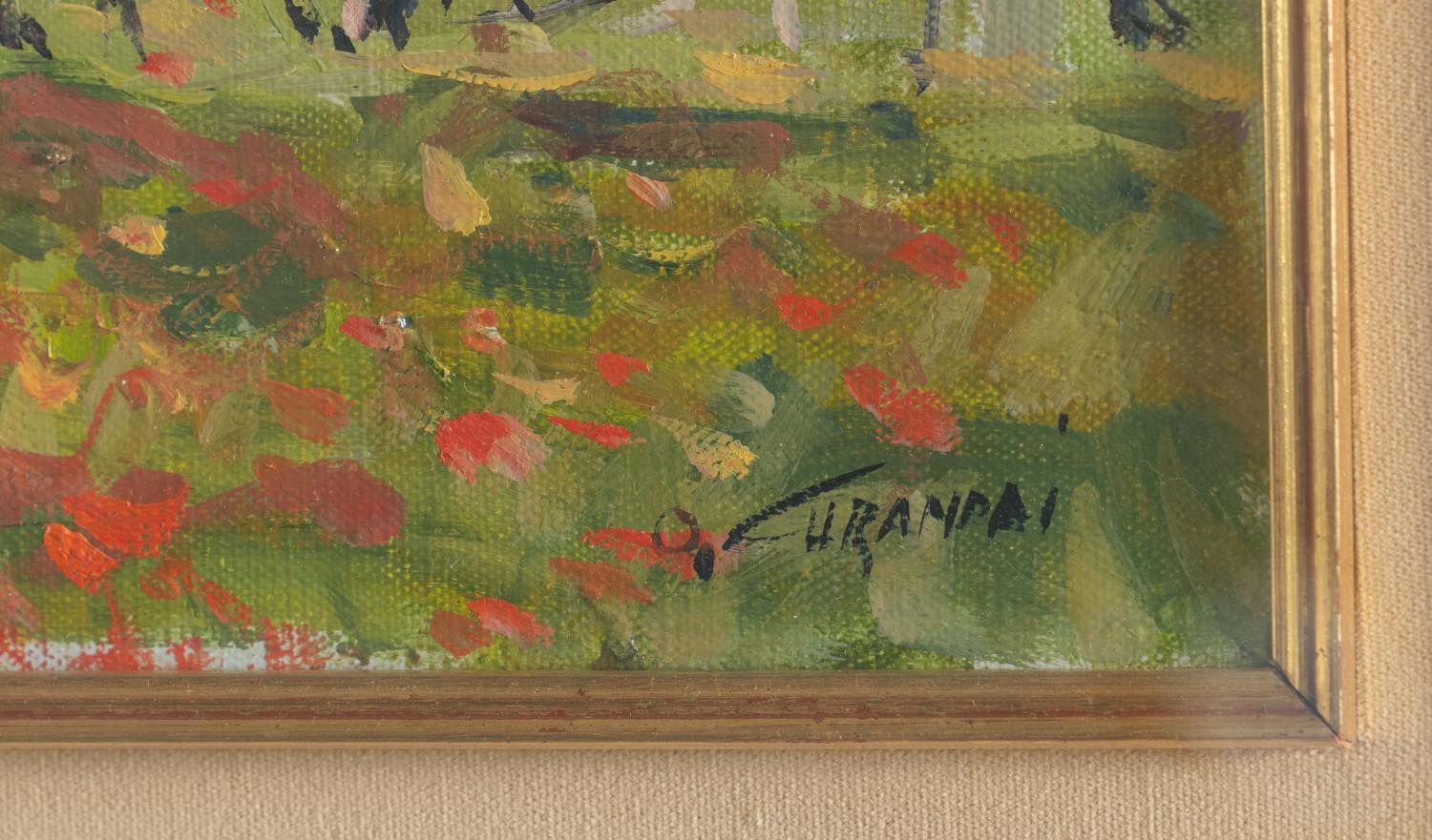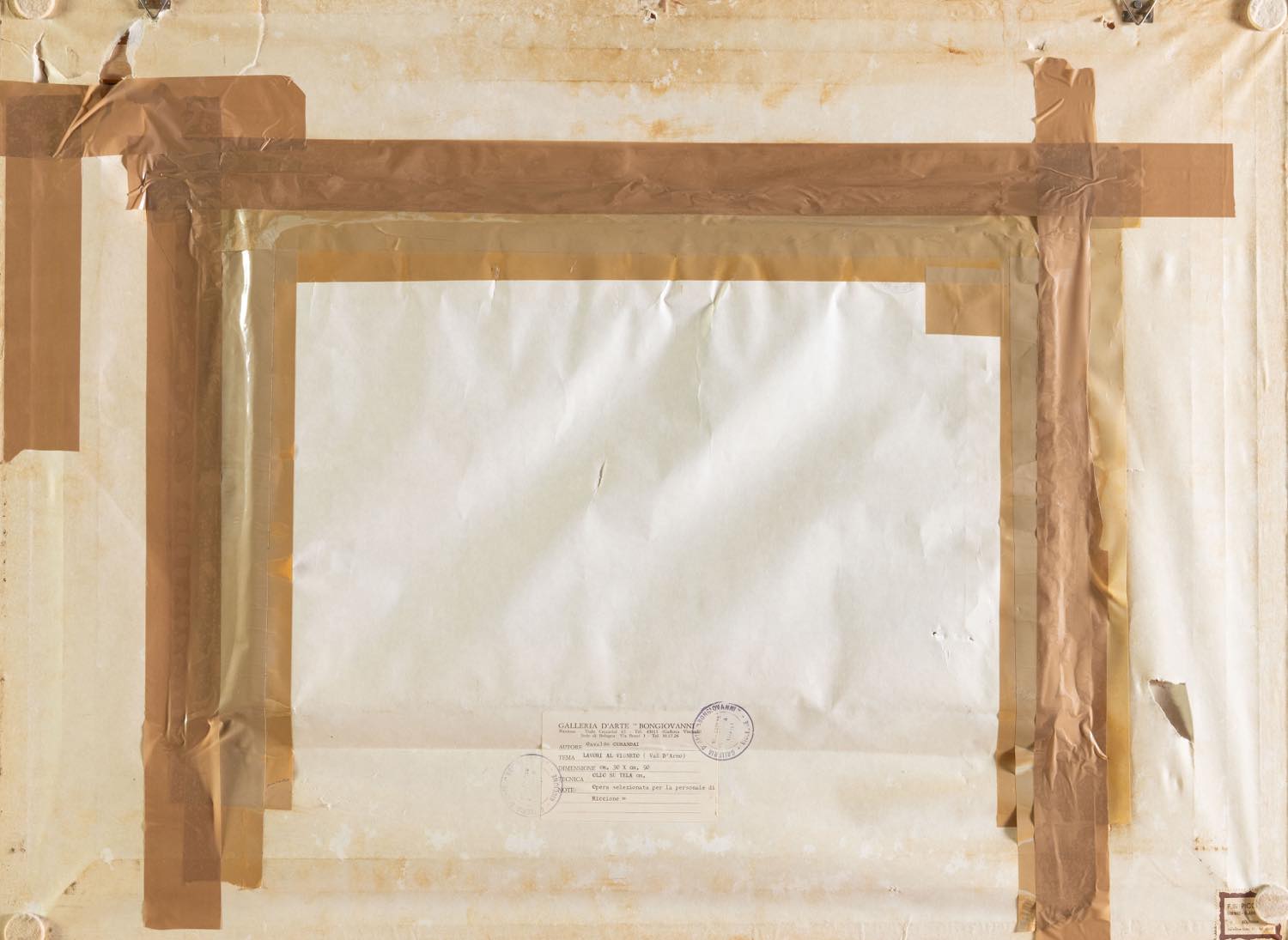 Olio su tela, firmato in basso a destra, reca al retro firma e data, ed etichetta della Galleria d'Arte Bongiovanni - Riccione, con autore, dimensioni, tecnica H cm 30x50 - con cornice H cm 62x83