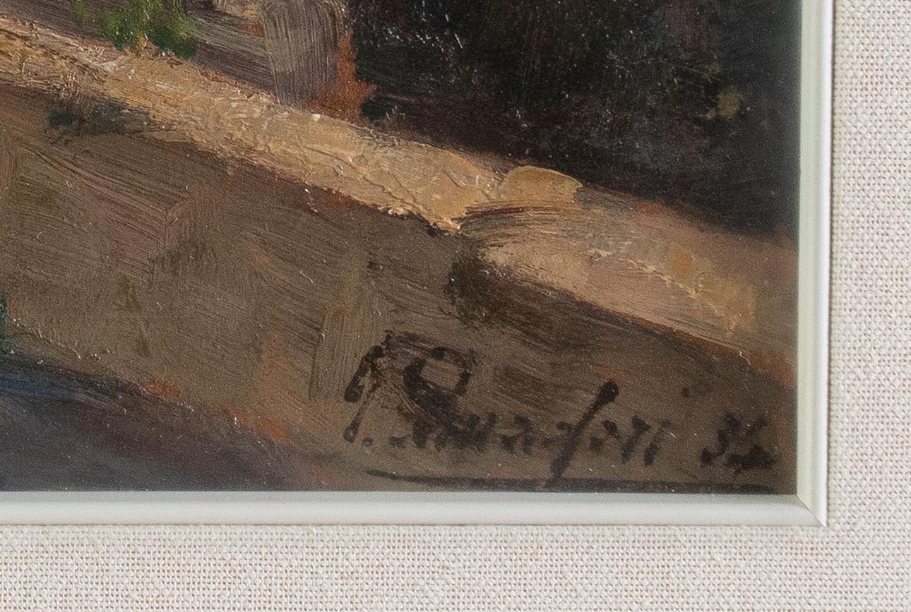 Olio su cartoncino, firmato e datato in basso a destra, reca al retro titolo e firma, H cm 31x49 - con cornice H cm 50,5x68,5