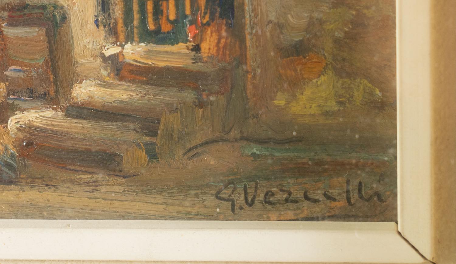 Olio su cartone, firmato in basso a destra, reca al retro iscrizione a matita datata 07/05/1917, H cm 21,5x27 - con cornice H cm 31x36x5