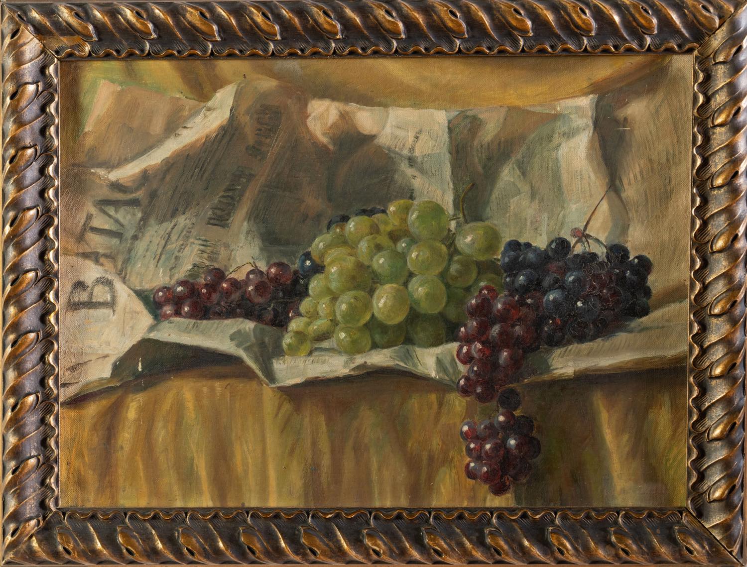 Anonimo del XX Secolo, "Natura morta uva e giornale".