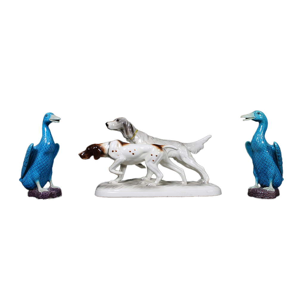LOTTO DI SEI SCULTURE in porcellana policroma raffiguranti animali diverse manifatture XX secolo misure varie