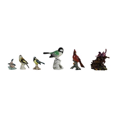 LOTTO COMPOSTO DA 12 SCULTURE in porcellana di pinta raffigurante volatili,una papera con collo incollato diverse manifatture XX secolo misure varie