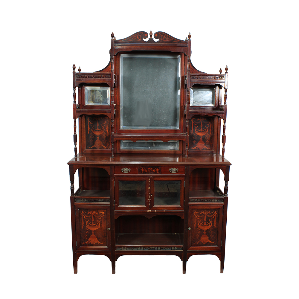 ETAGERE CON ALZATA in mogano con tarsie in bosso Inghilterra primi 900 h cm 190 x 121 x 40