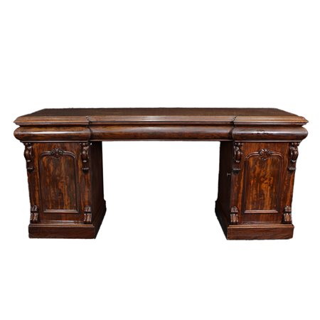 CREDENZA VITTORIANA in legno di mogano a due sportelli e tre cassetti Inghilterra XIX secolo h cm 103 x 216 x 68
