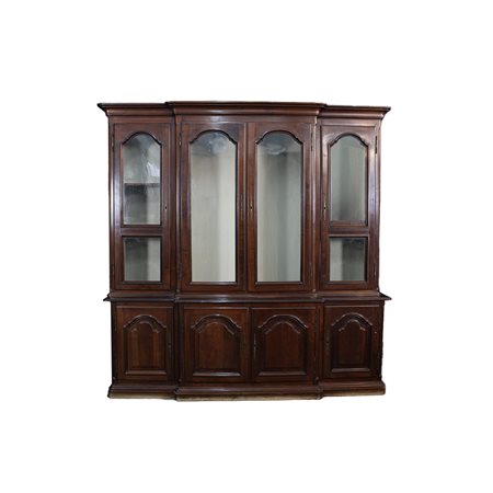 VETRINA A DOPPIO CORPO in legno di mogano parte inferiore a quattro sportelli ante superiore a quattro ante a vetri maestranze Italiane primi 900 h cm 230 x 228 x 50