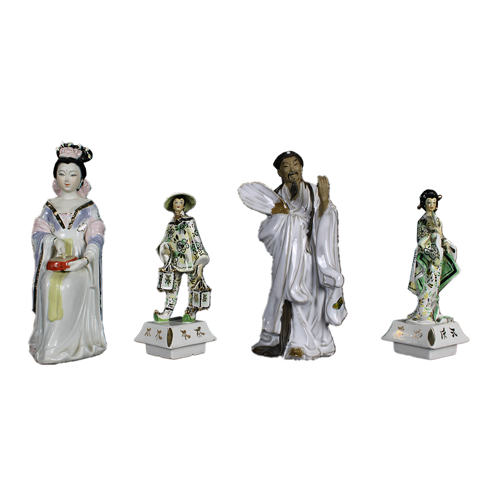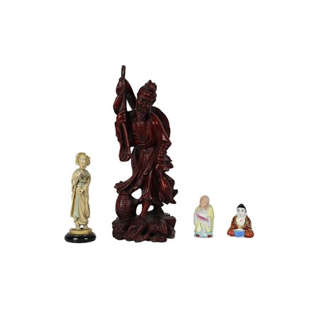 LOTTO COMPOSTO DA otto sculture in diversi materiali raffiguranti personaggi orientali diverse manifatture XX secolo misure varie