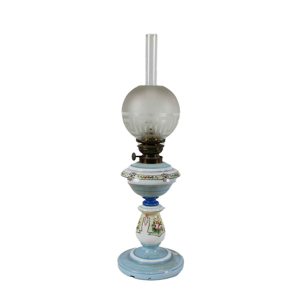 LUME in opaline dipinto a motivi floreali con bocce e tubo in vetro Sicilia fine XIX secolo h cm 58 x 17
