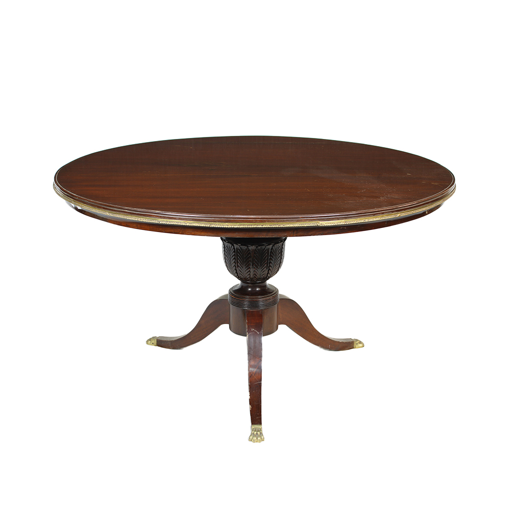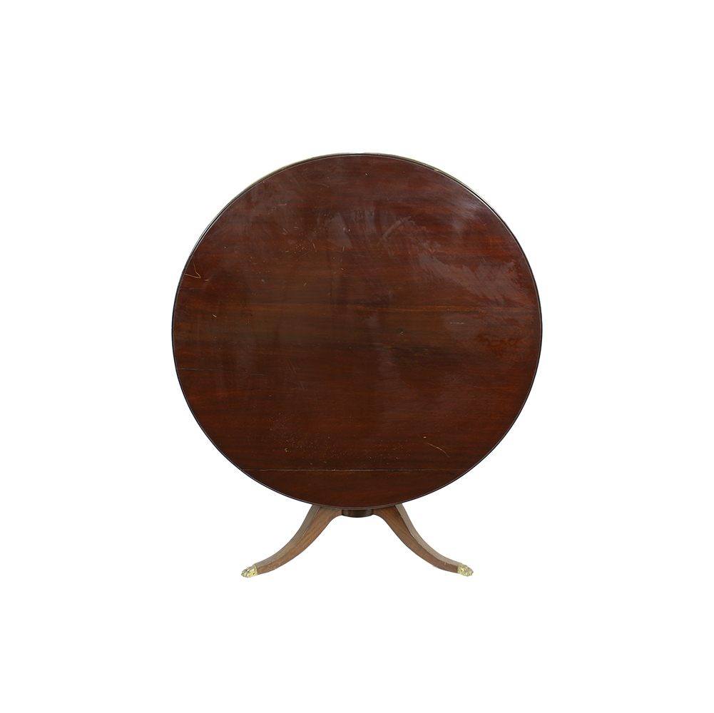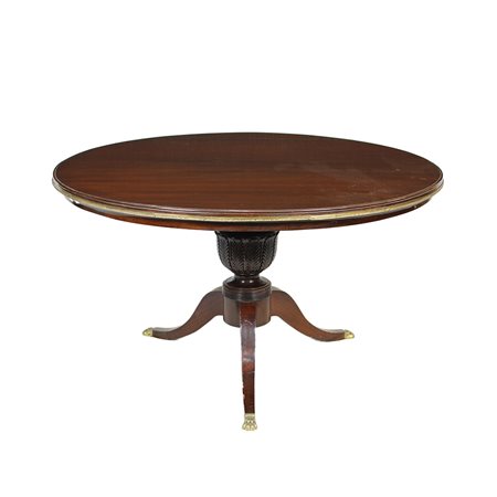 TAVOLO DA CENTRO A VELA in legno di mogano a piede centrale arricchito da perfilo e piedi in bronzo dorato Ingliilterra fine XIX /inizio XX secolo h cm 79 x Ø 135
