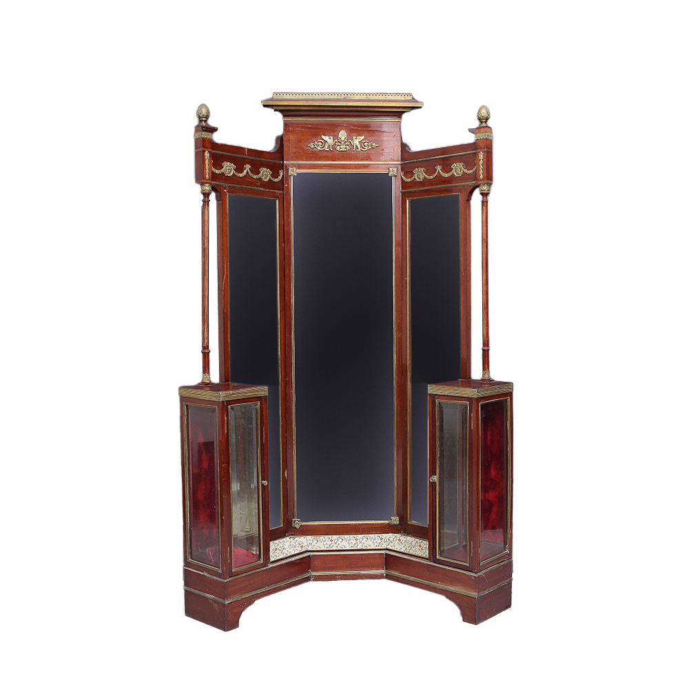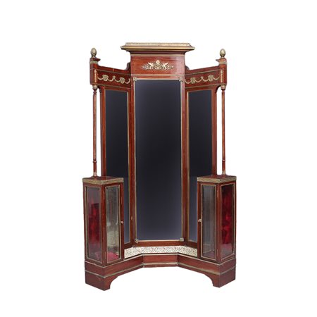 MOBILE AD ANGOLO DI GUSTO IMPERO in legno di mogano arricchito da applicazioni in bronzo finemente cesellati e dorati Francia fine XIX secolo