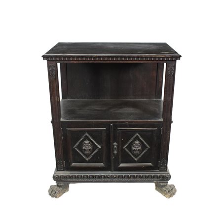 CARTIERINA in legno ebanizzato e scolpito con due sportelli nella parte inferiore, sostenuta da gambe leonine Sicilia primi 900 h cm 90 x 82 x 43
