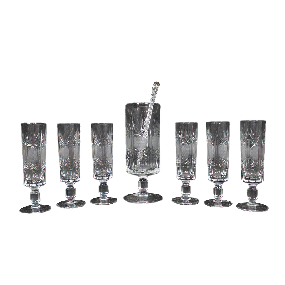 SERVIZIO DA COCKTAIL DA 6 in cristallo intagliato e finemente inciso Germania XX secolo misure varie