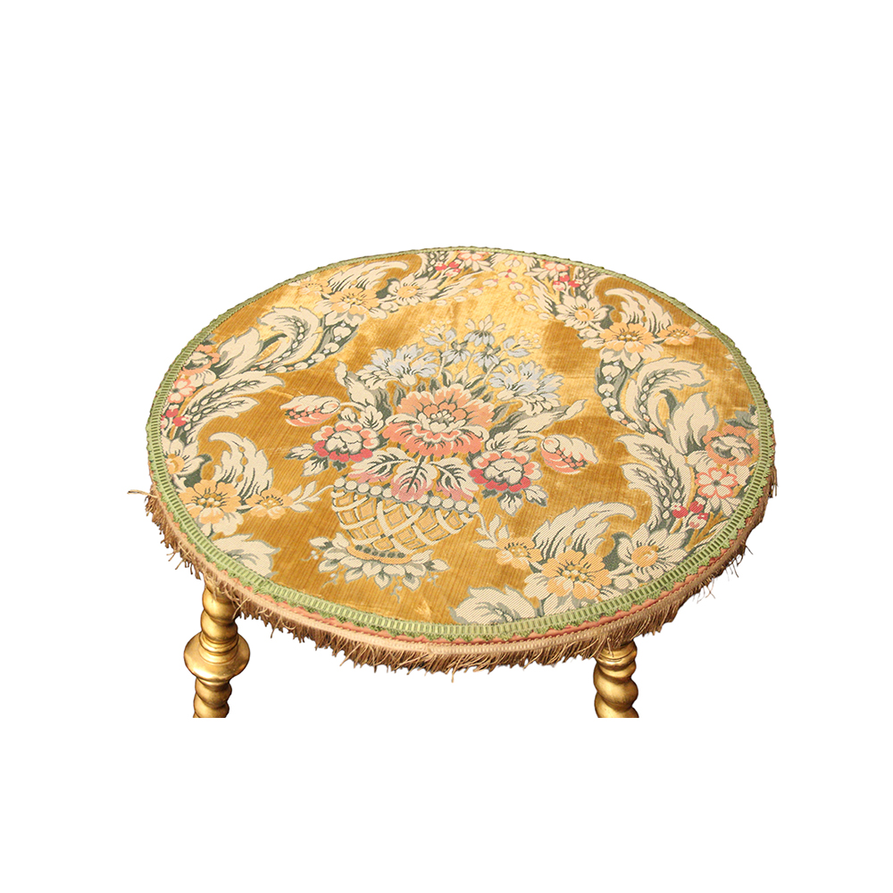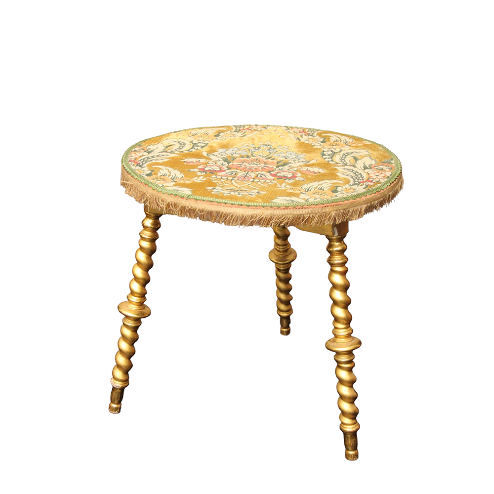 TAVOLO TONDO DORATO piano di stoffa Italia XX secolo h cm 62 x 62