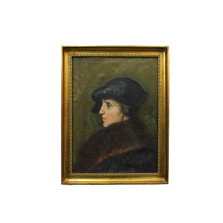 OLIO SU TELA raffigurante profilo di donna dentro cornice in legno dorato Sicilia fine XIX secolo h cm 60 x 45 - cornice h cm 70 x 55