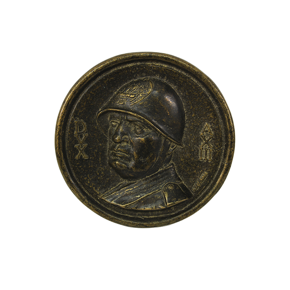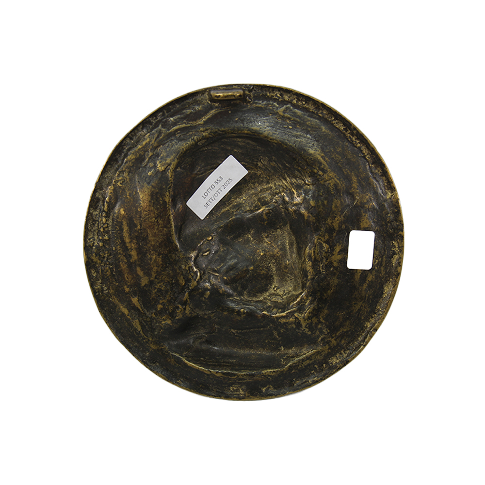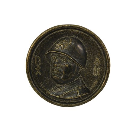 PLACCA IN RILIEVO D'EPOCA in bronzo raffigurante Mussolini. Italia meta' del XX secolo cm Ø 18